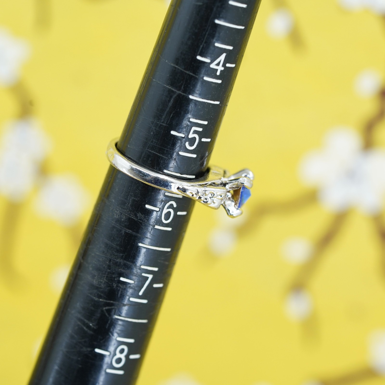 Size 5.5, vintage Sterling silver 925 handmade ring with blue crystal