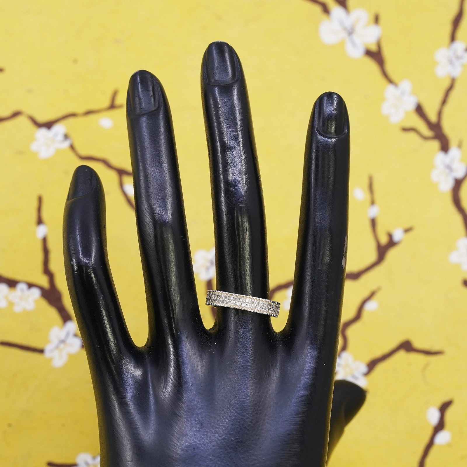 как выглядит Size 7, vintage Sterling silver ring, 925 band with cluster cz фото