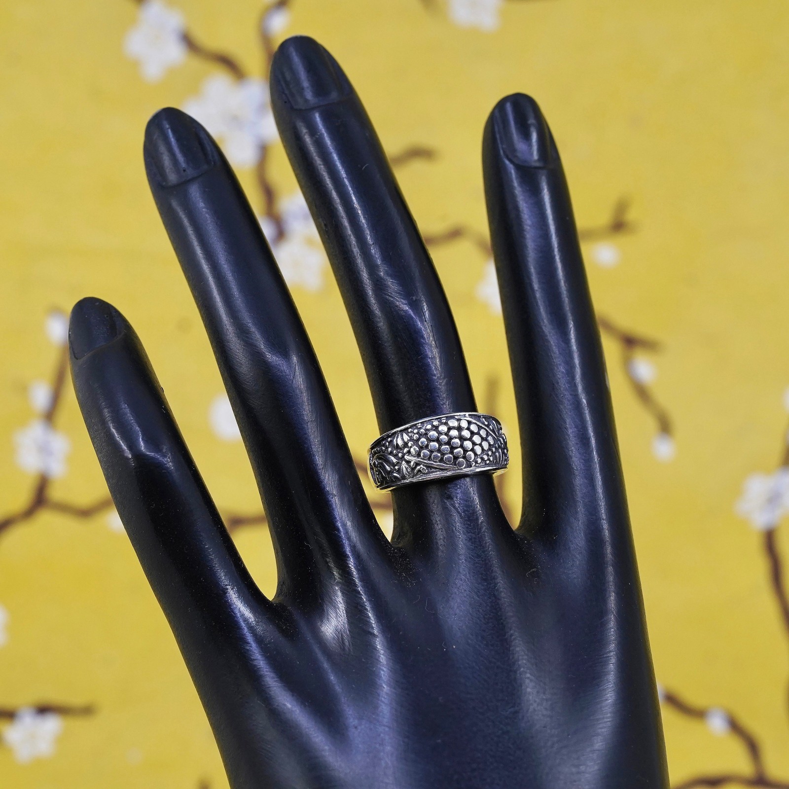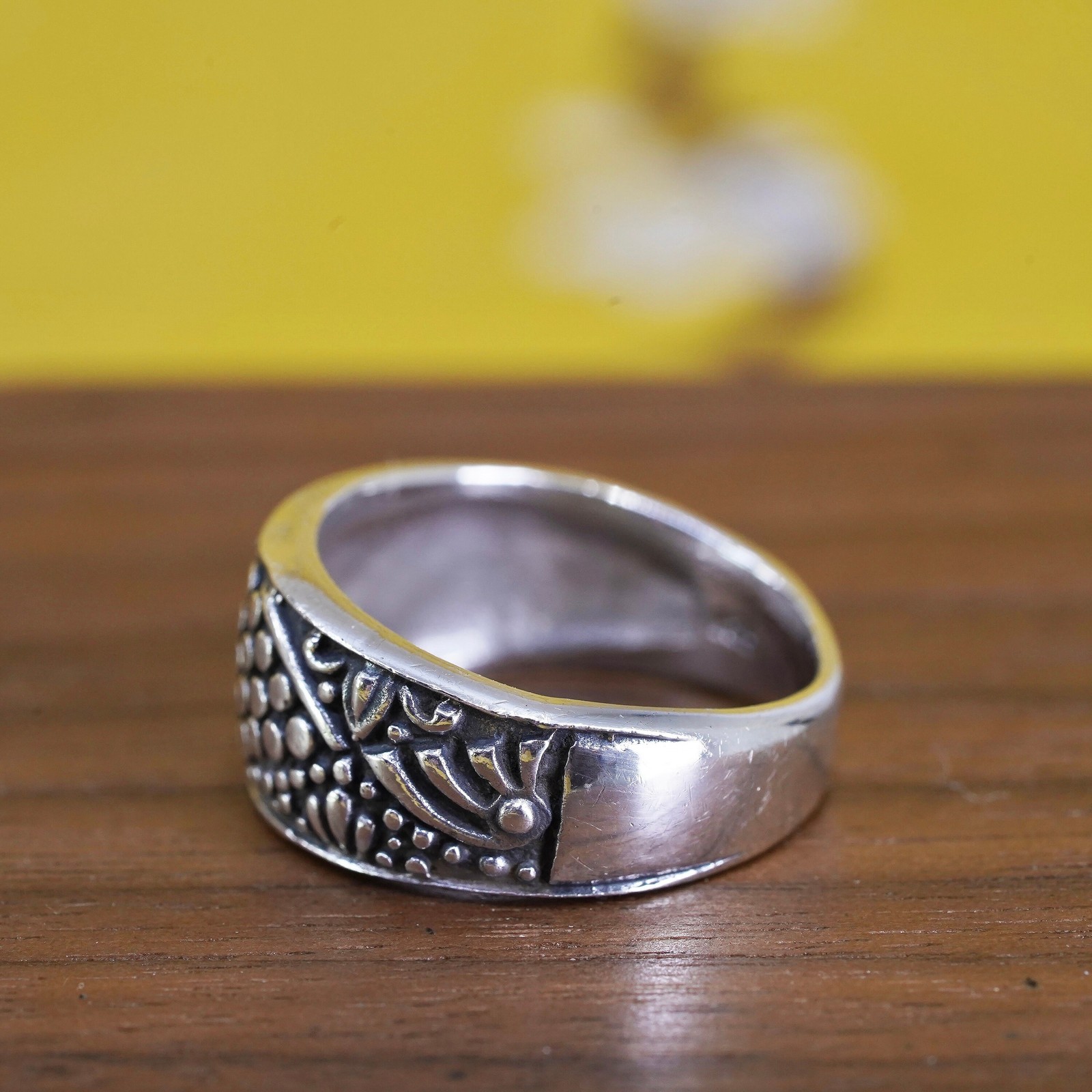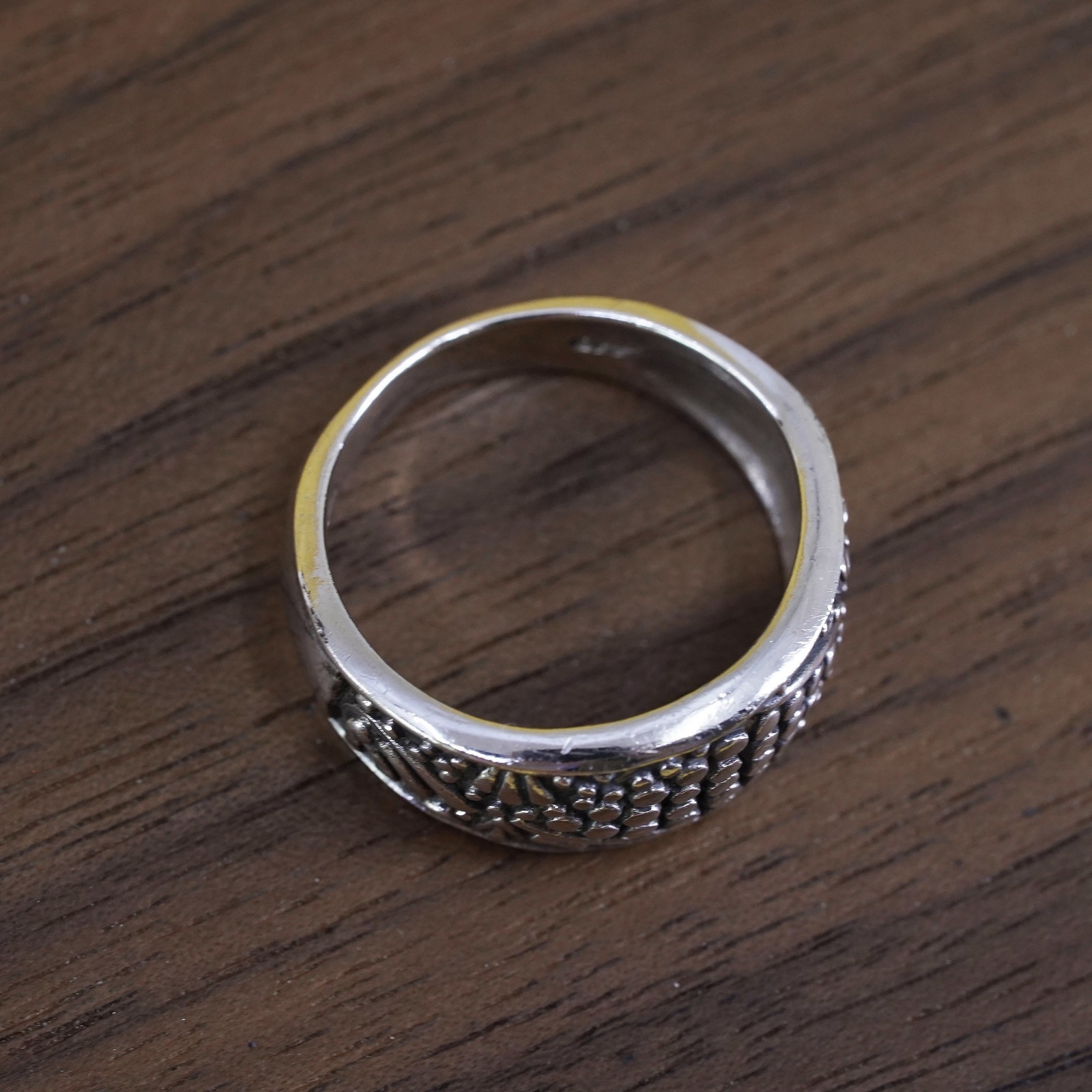 как выглядит Size 6.75, VTG mexico Sterling 925 silver handmade ring, 925 modern beads band фото