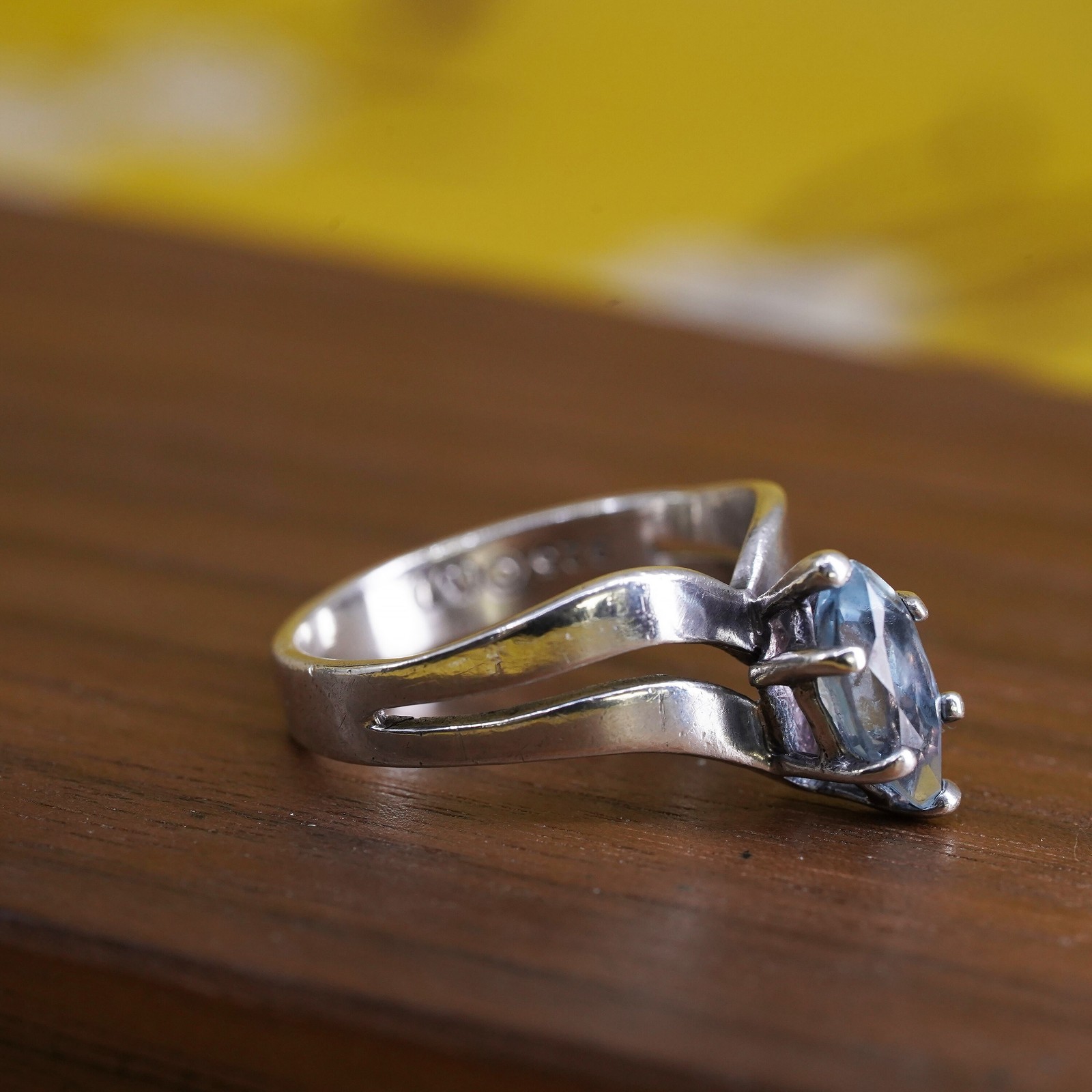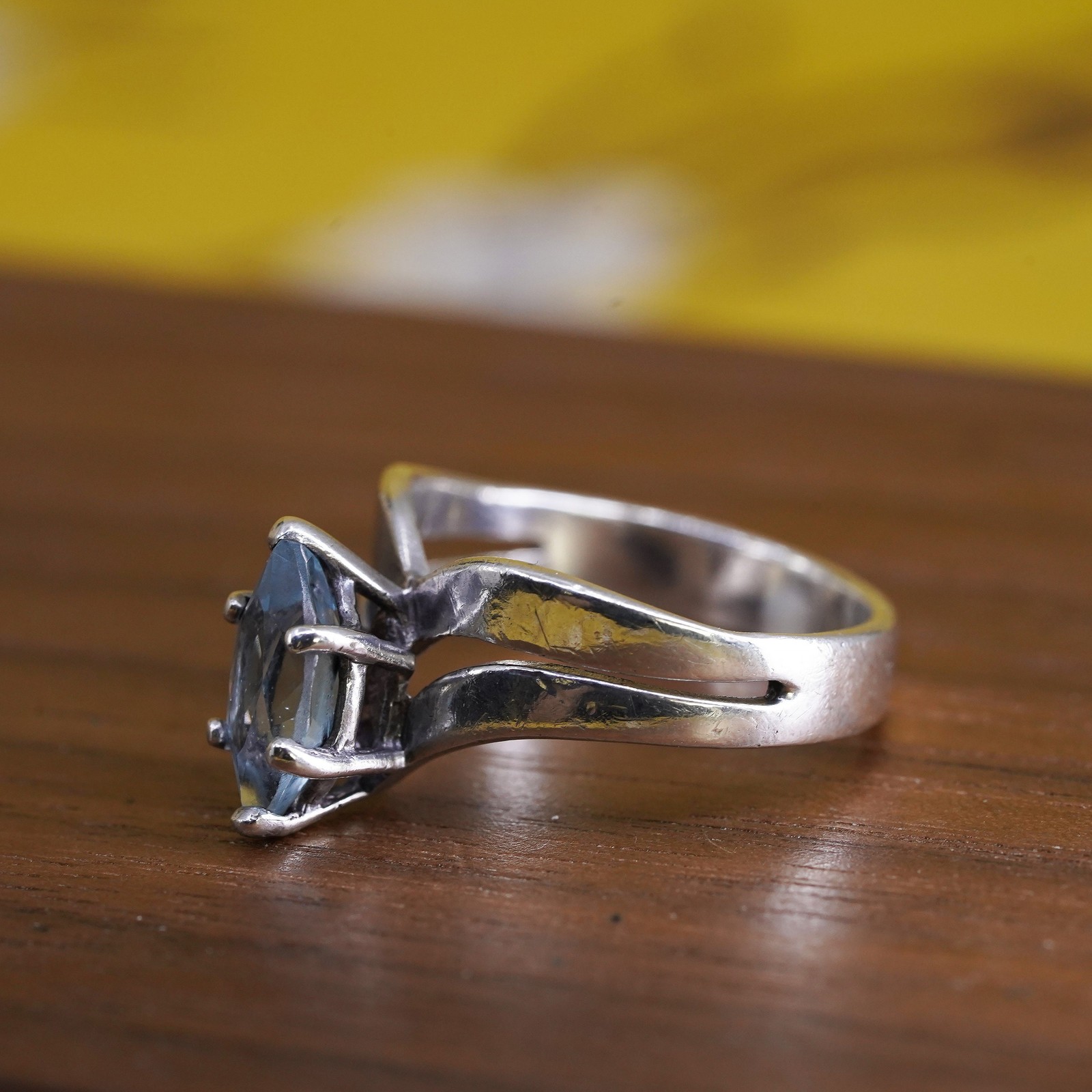 Size 6, vintage sterling 925 silver handmade ring with blue topaz details