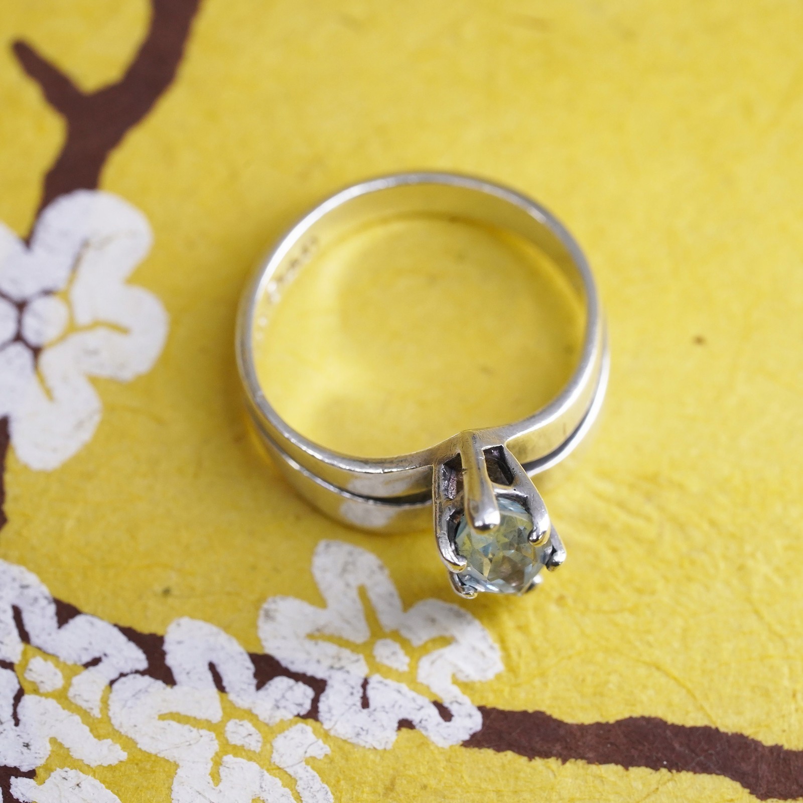 как выглядит Size 6, vintage sterling 925 silver handmade ring with blue topaz details фото