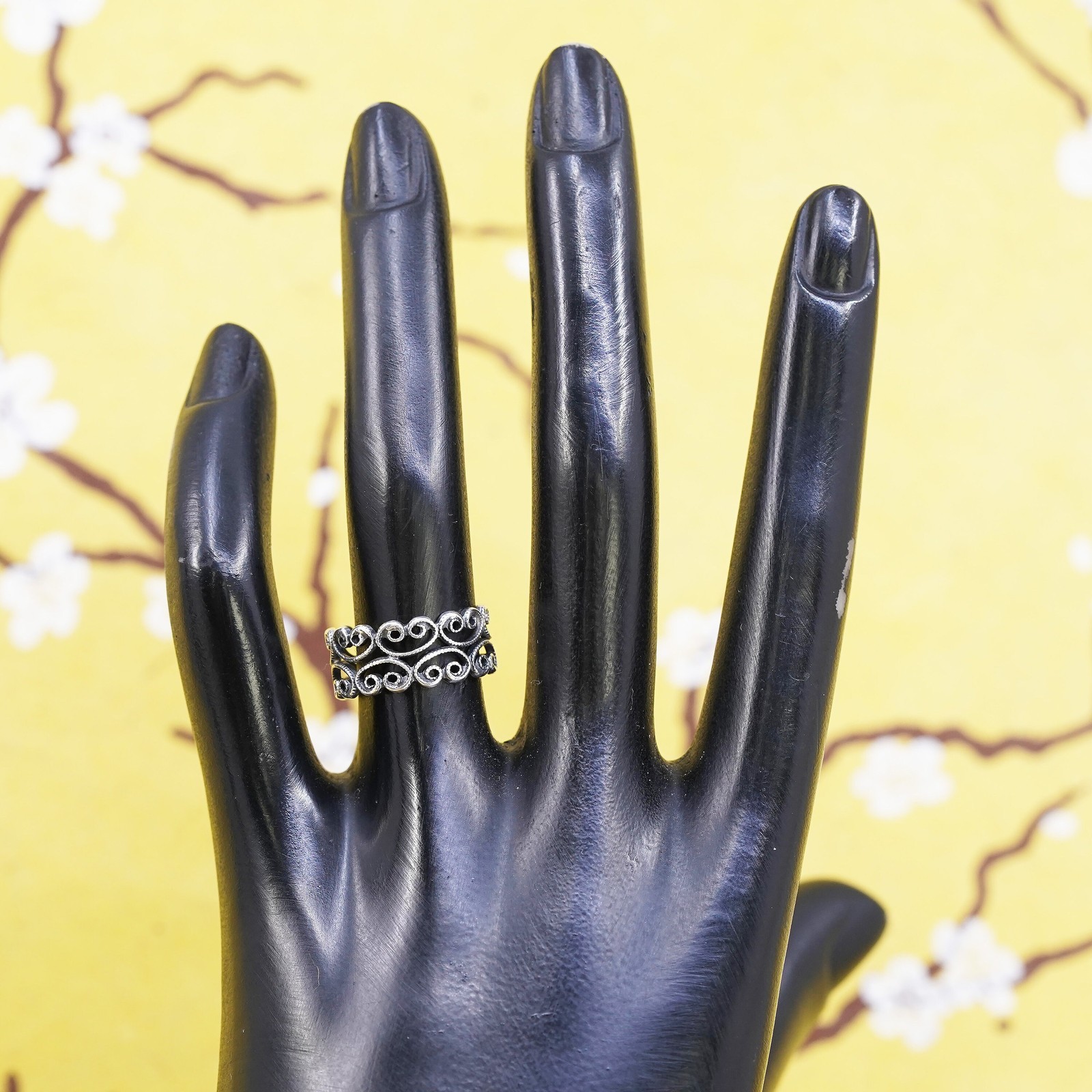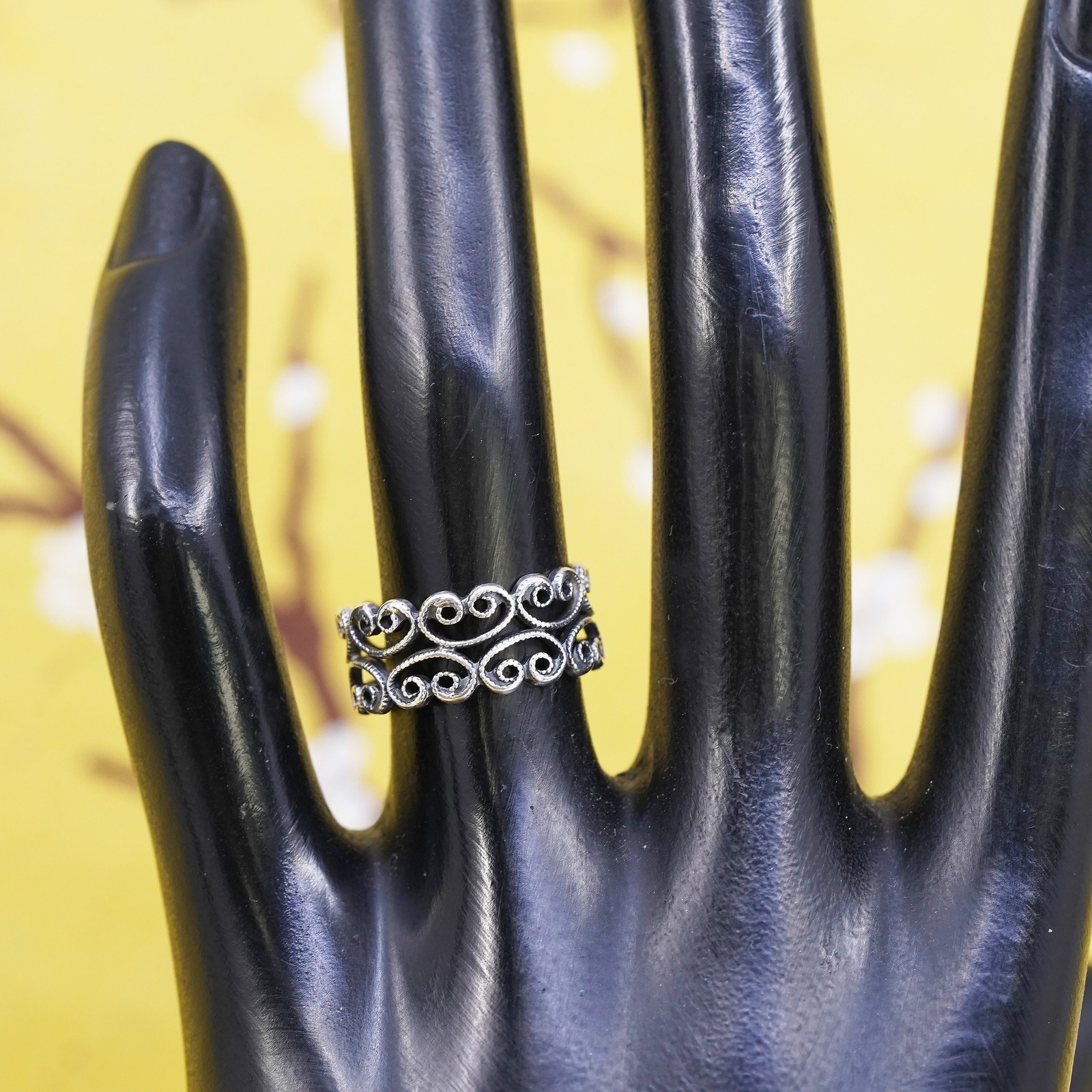как выглядит Size 6, vintage Sterling silver handmade ring, 925 filigree band фото