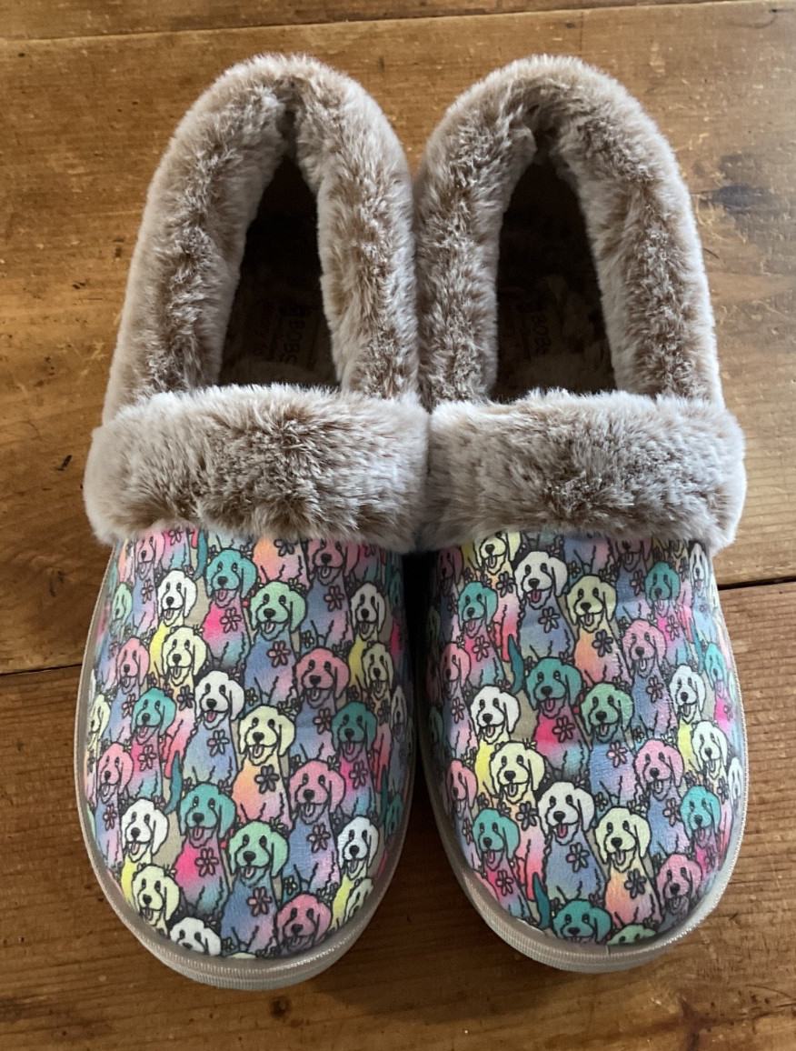 Bobs Skechers Cozy Snuggle Rovers Dogs Memory Foam Tan Fur Wom Slippers Size 10