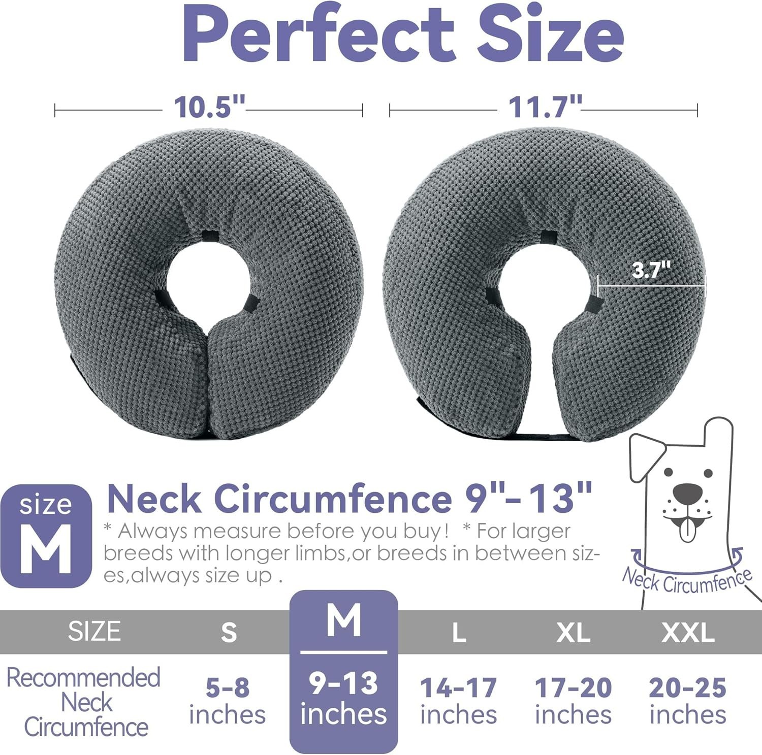 Soft Inflatable Dog Recovery Collar Donut Grey Medium