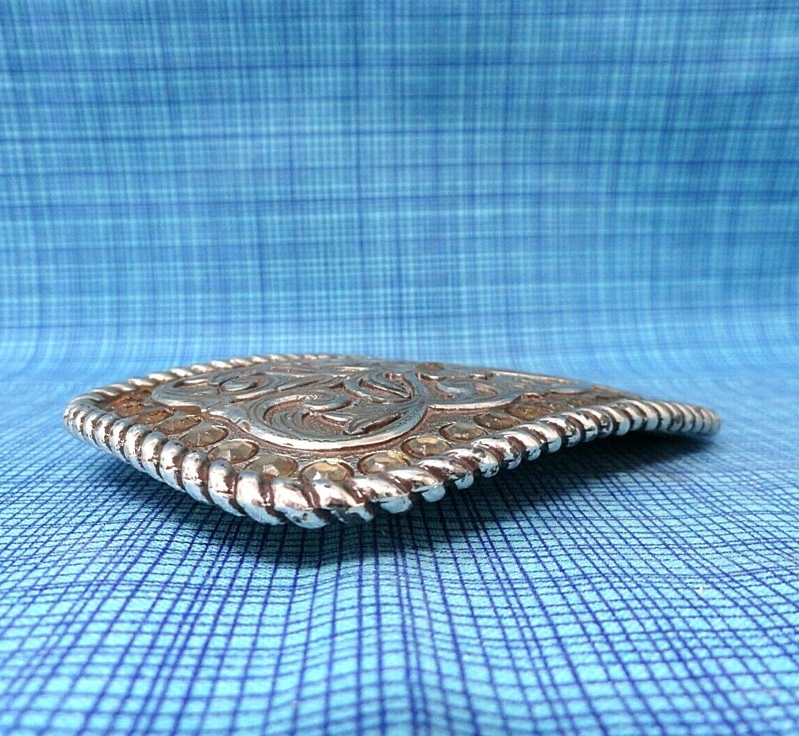 как выглядит Classic Western Belt Buckle Cowboy Cowgirl Scroll Crystals Vintage 80s .CPA071 фото