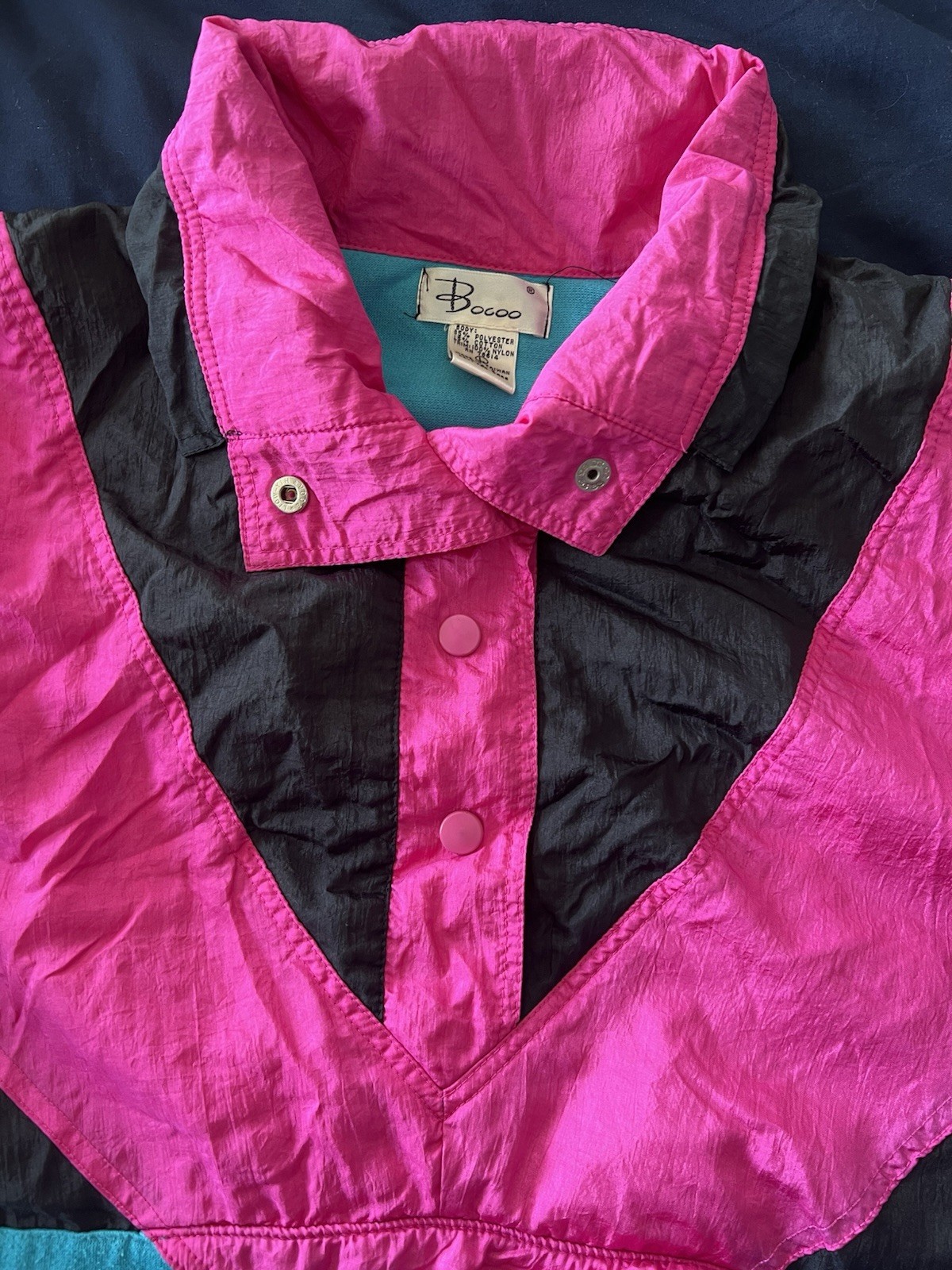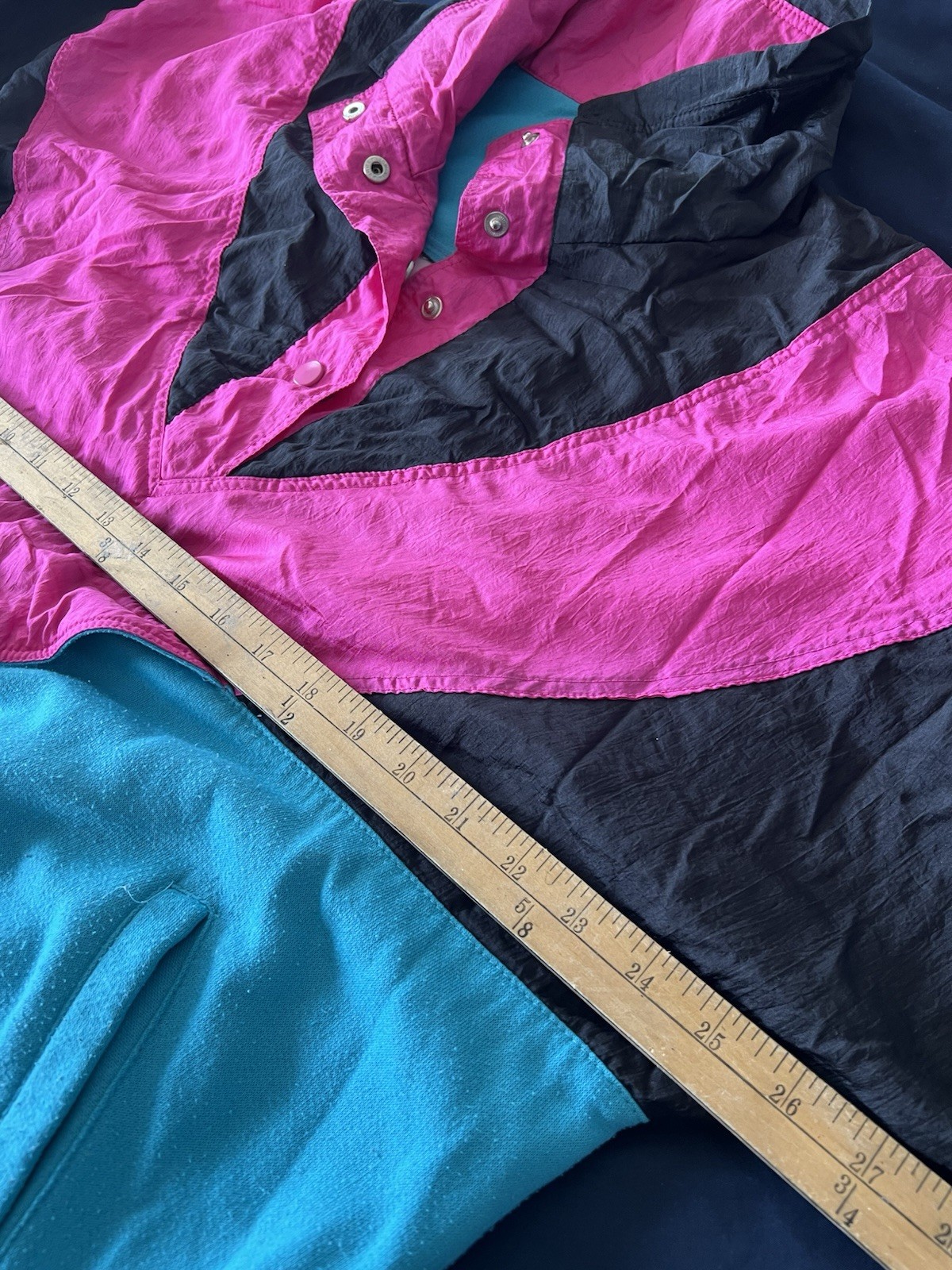 как выглядит Vintage 80s 90s Pullover Windbreaker Womens Large Black Teal Pink фото