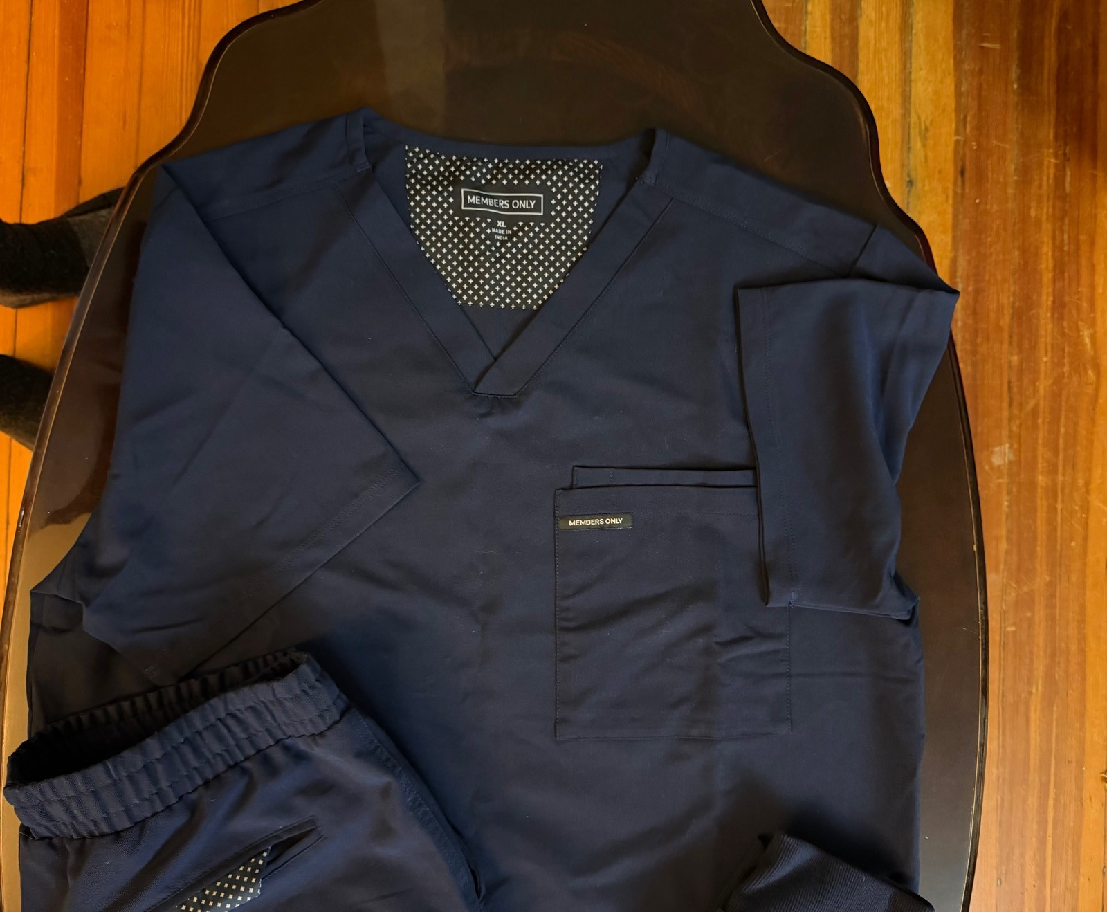 как выглядит Members Only Mens Navy Medical Scrub Uniform Scrub Jogger Set - XL top, L pants фото