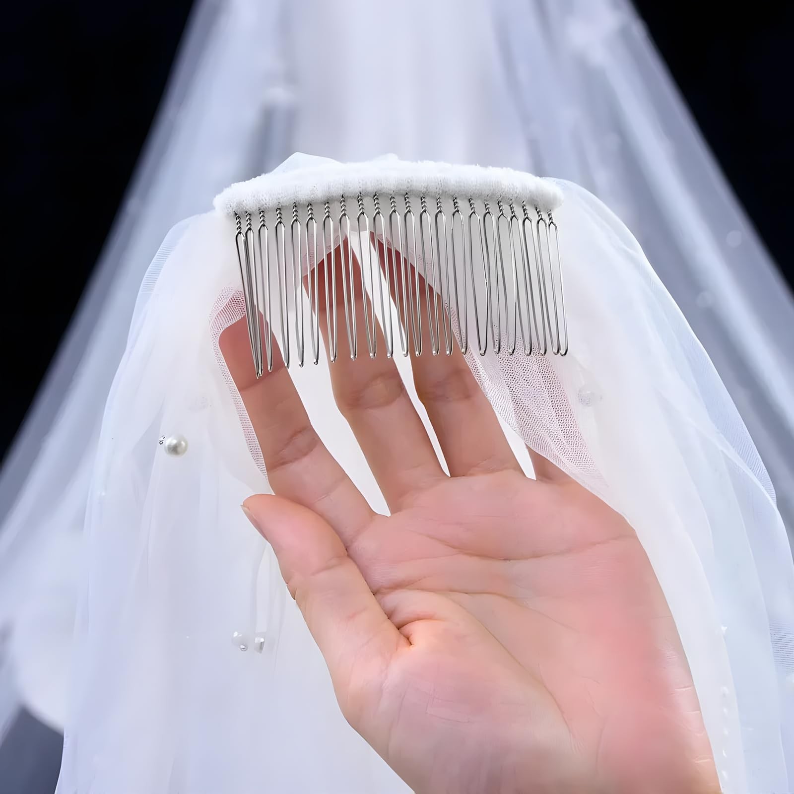 Wedding Veil, 1 Tier Pearl Bridal Veil With Metal Comb, Bride Veil, Veils for...