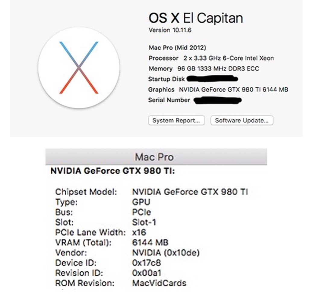 Nvidia GeForce GTX 980 Ti 6GB GPU Video Card Flashed For Mac