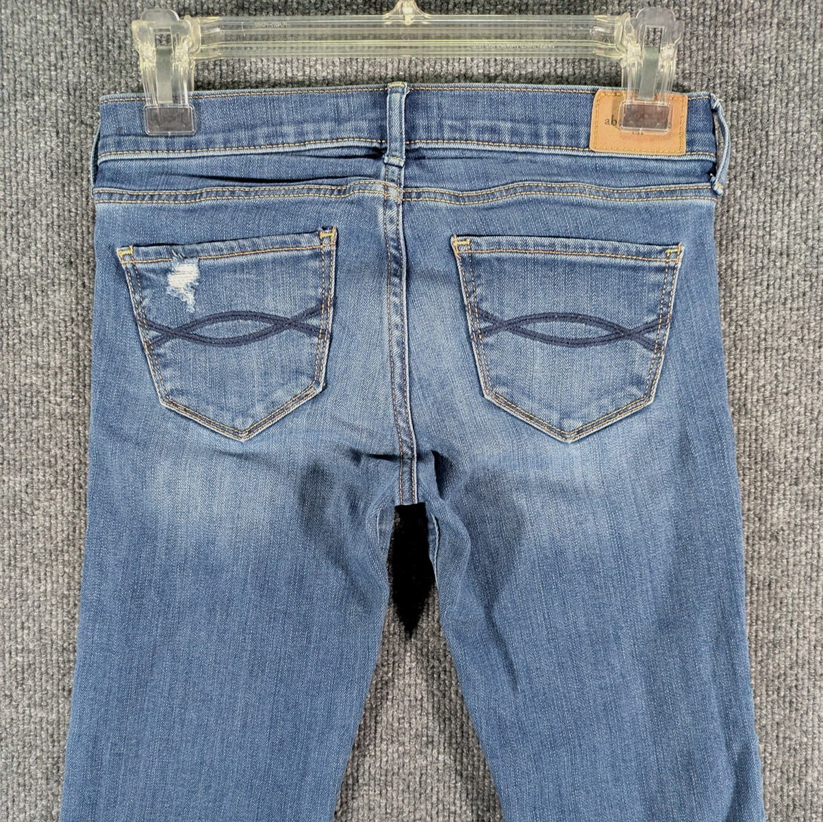 как выглядит Abercrombie Kids Girls Medium Wash Distressed Straight Leg Skinny Jeans- Size 14 фото