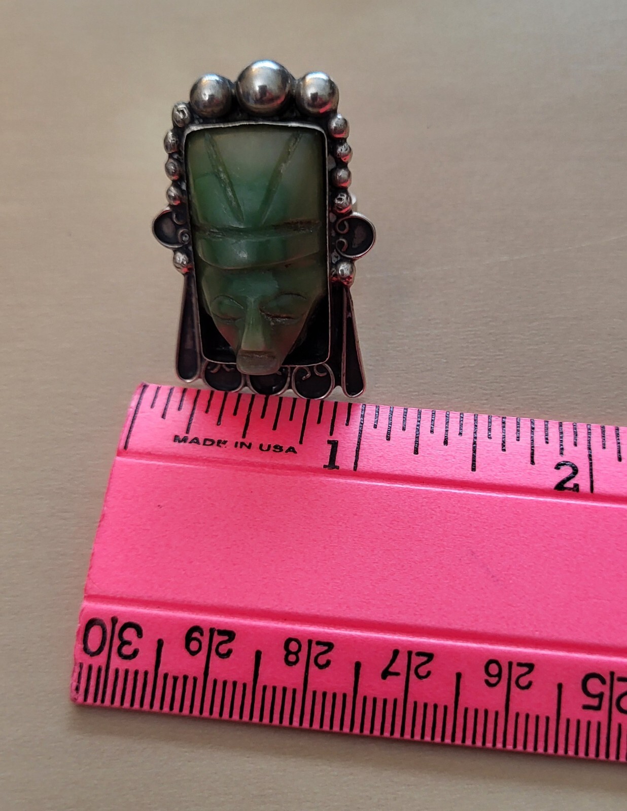 как выглядит Mexico Silver carved Jade Ring фото