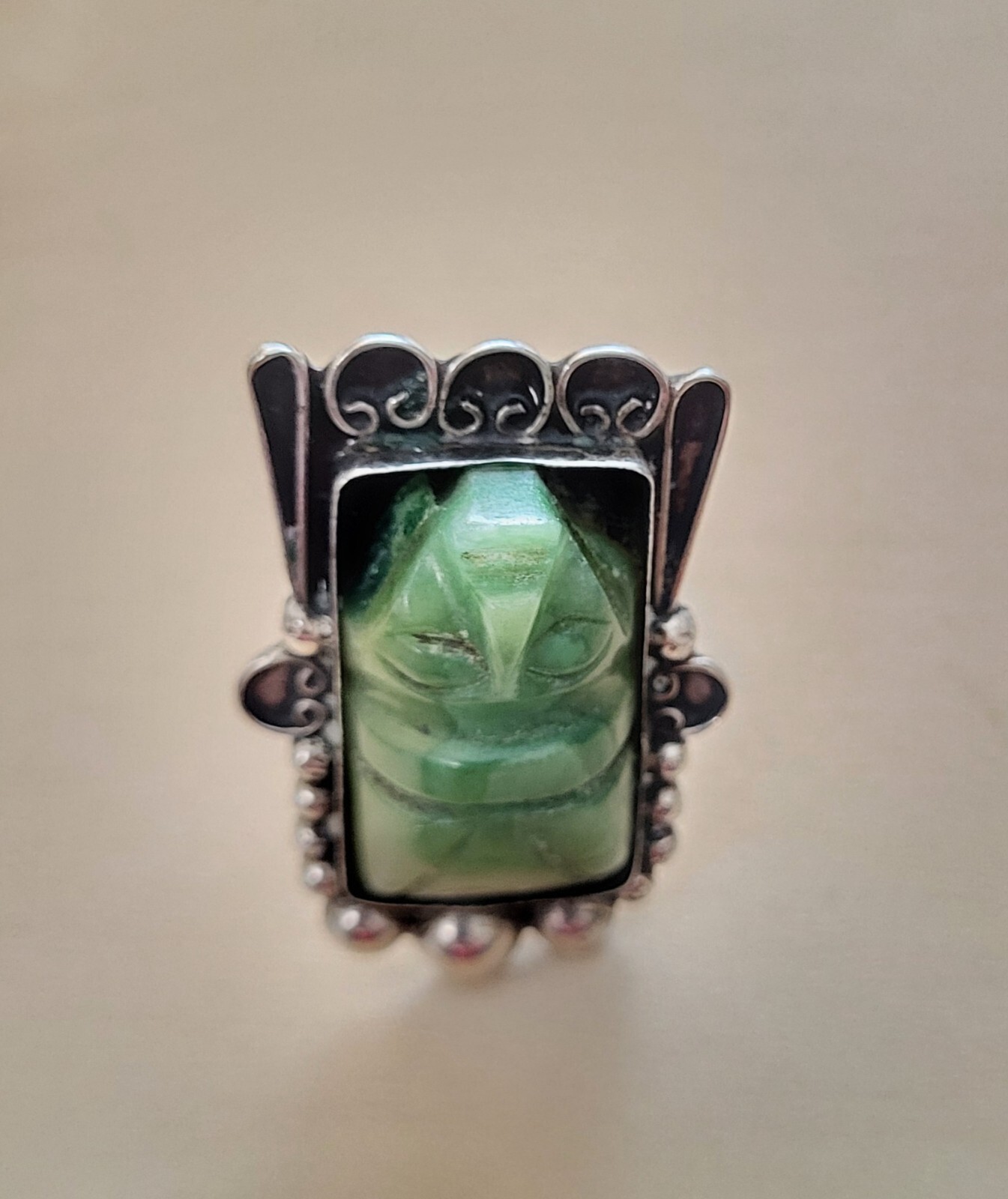 Mexico Silver carved Jade Ring