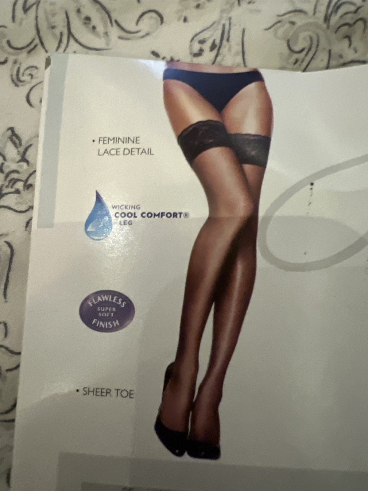 как выглядит Hanes Silk Reflections Lace Top Sheer Toe Thigh-Highs Little Color Sz AB 0A444 фото