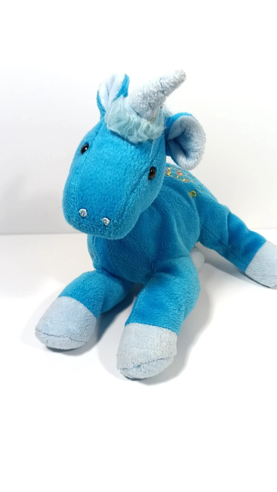 как выглядит FAO Schwarz Blue Unicorn Plush Stuffed Animal Toy Embroidered Floral Girl фото