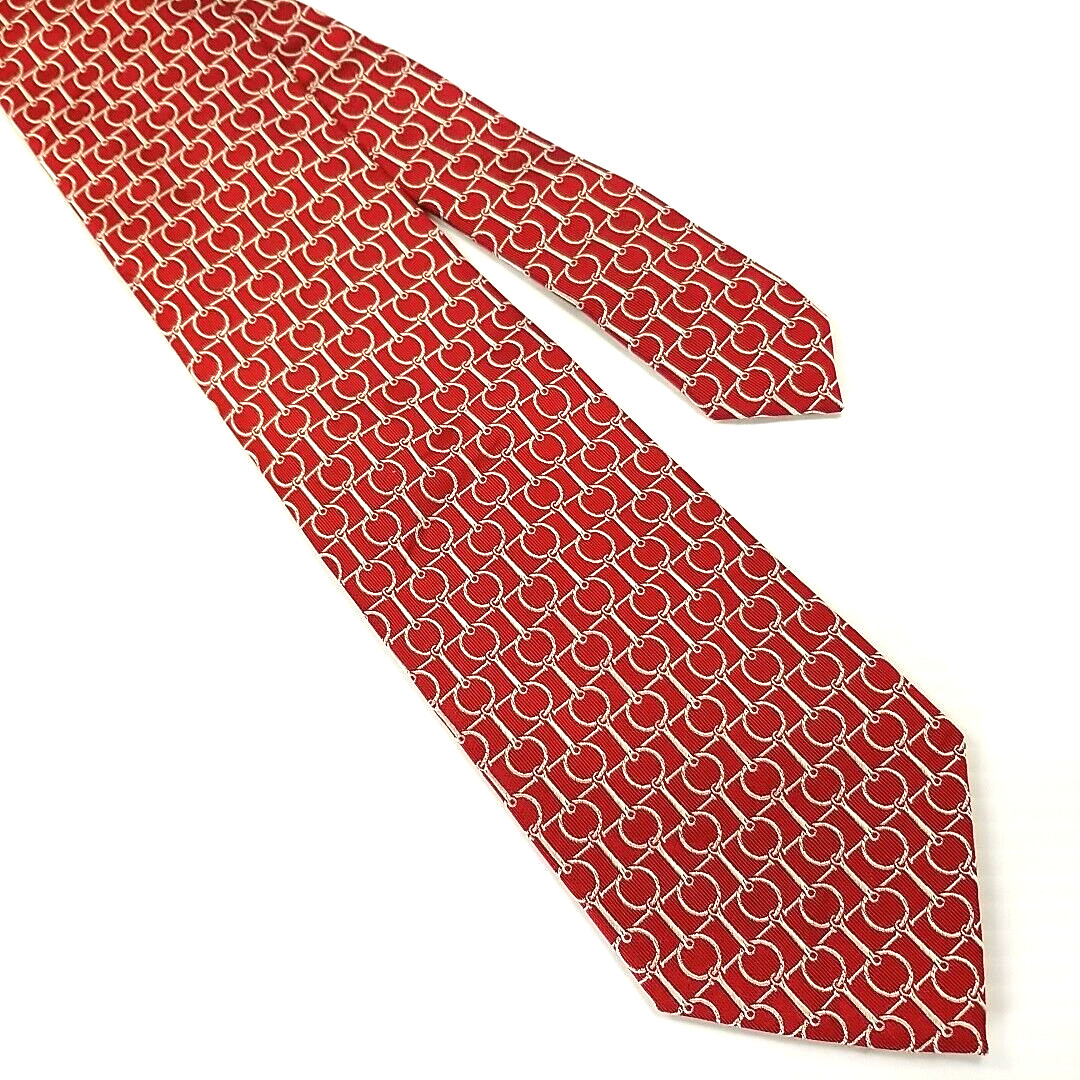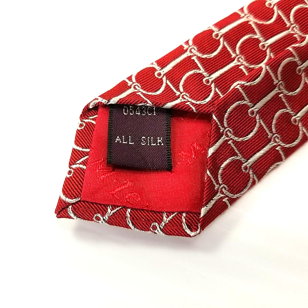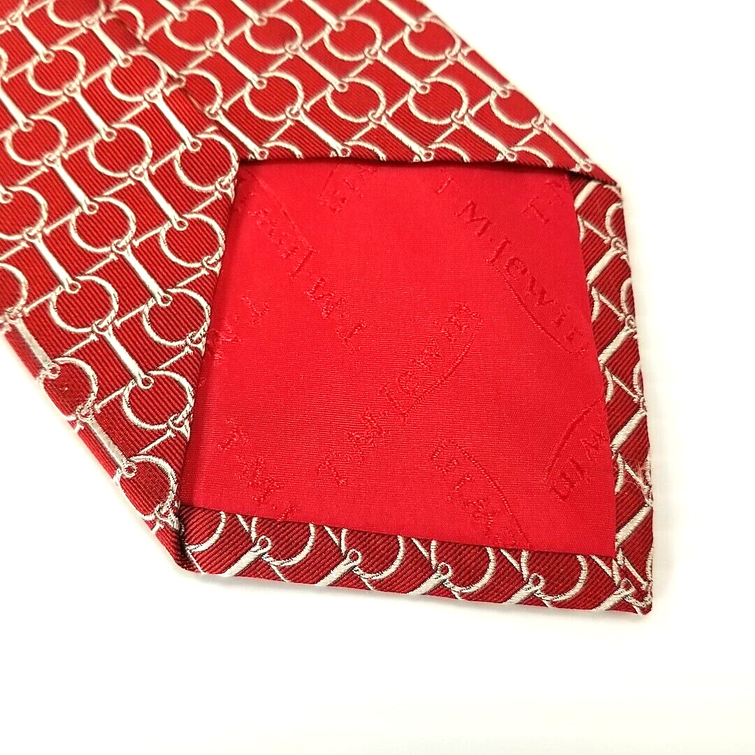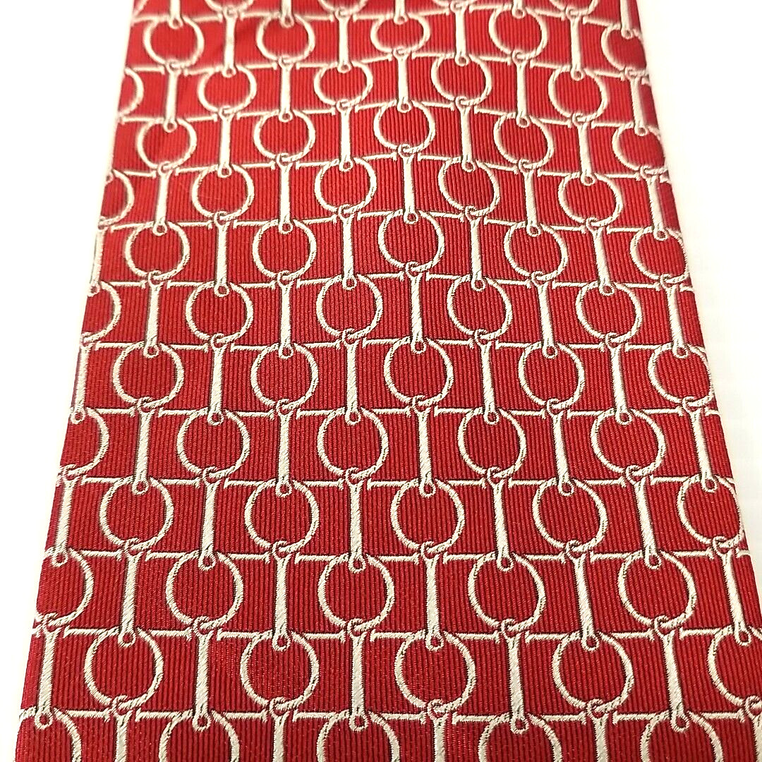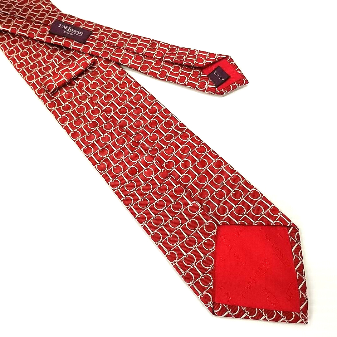 T.M. Lewin Luxury Tie Red Horse Bridle Tack Pattern Woven Silk Necktie 59 x 3.5