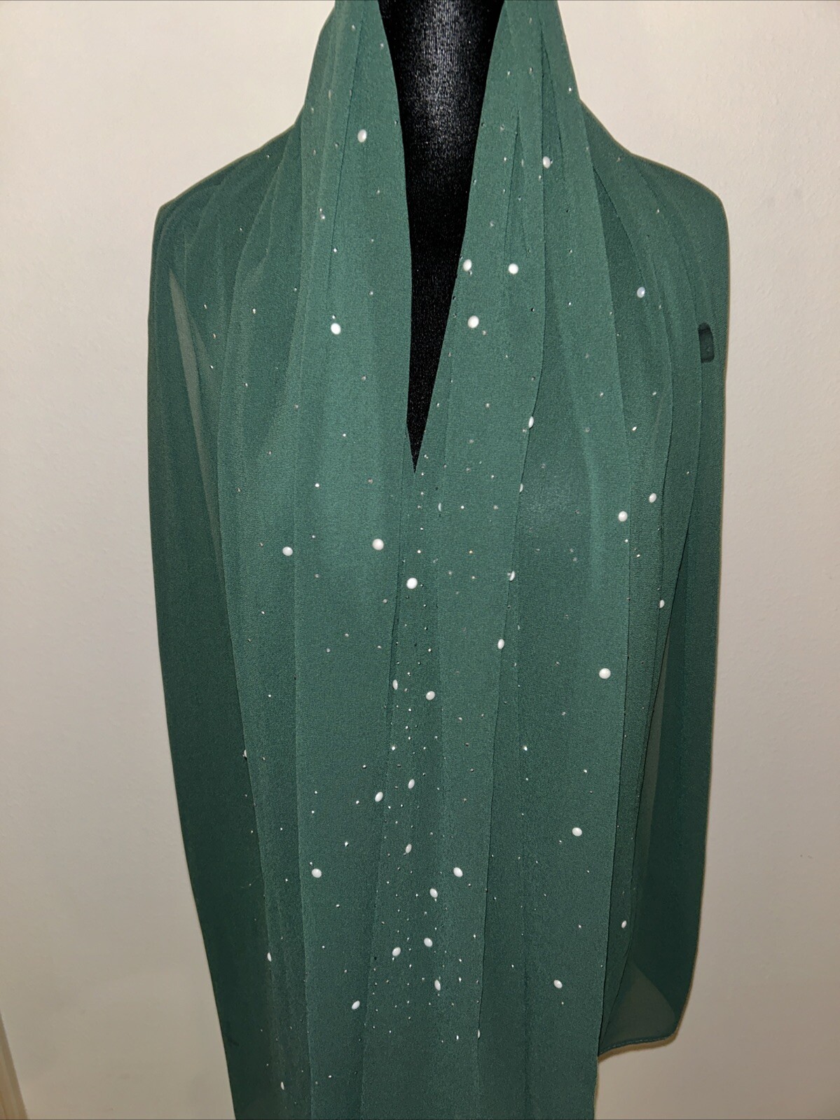 Women s Long Green Dupatta Shawl Wrap Silky Sparkling With White Beads