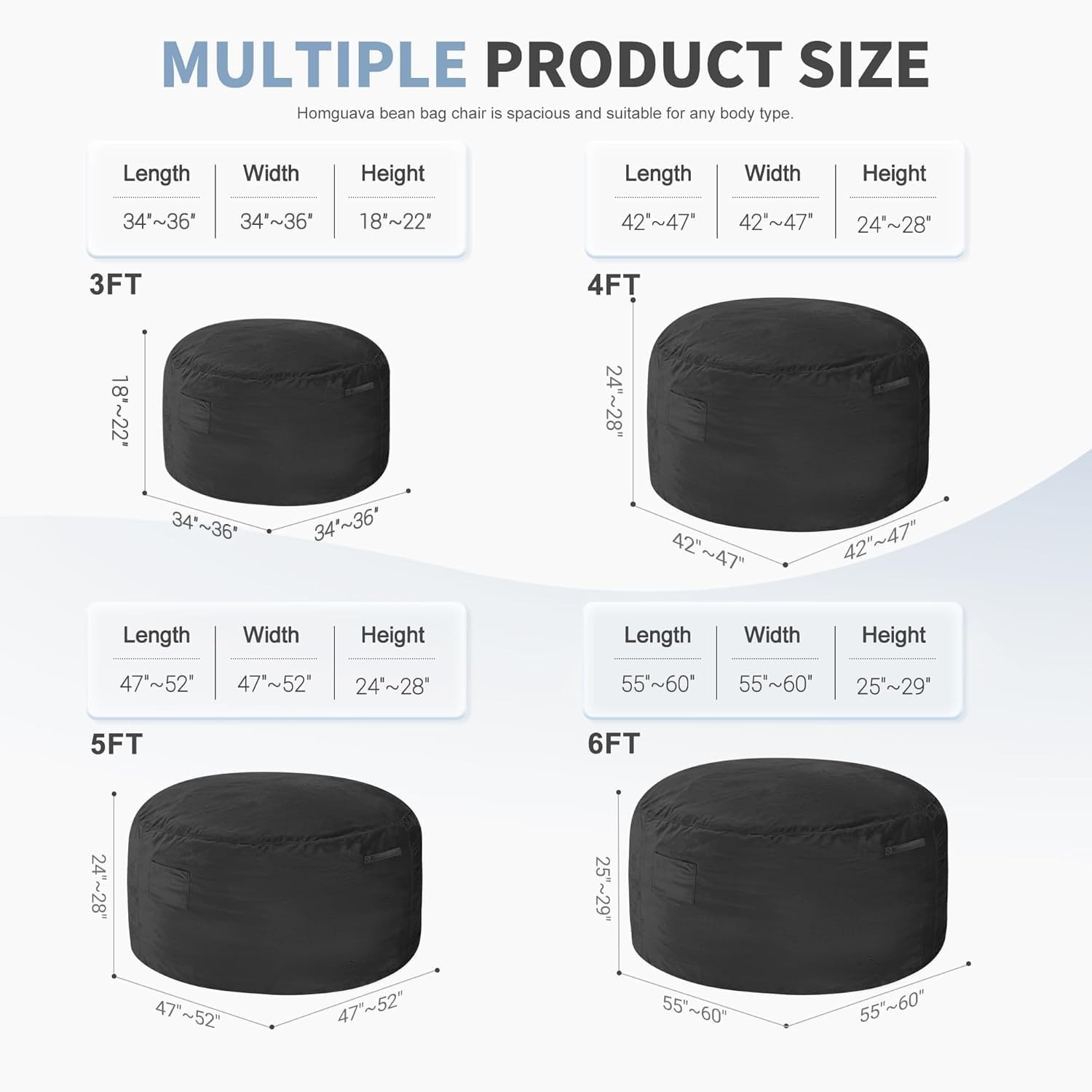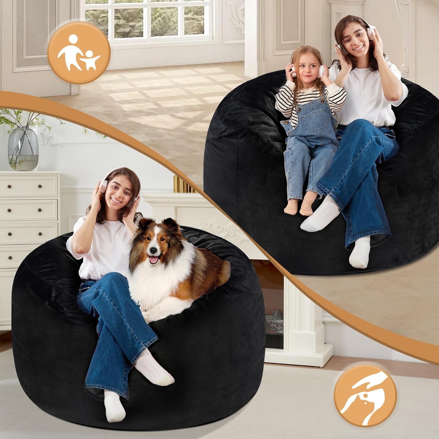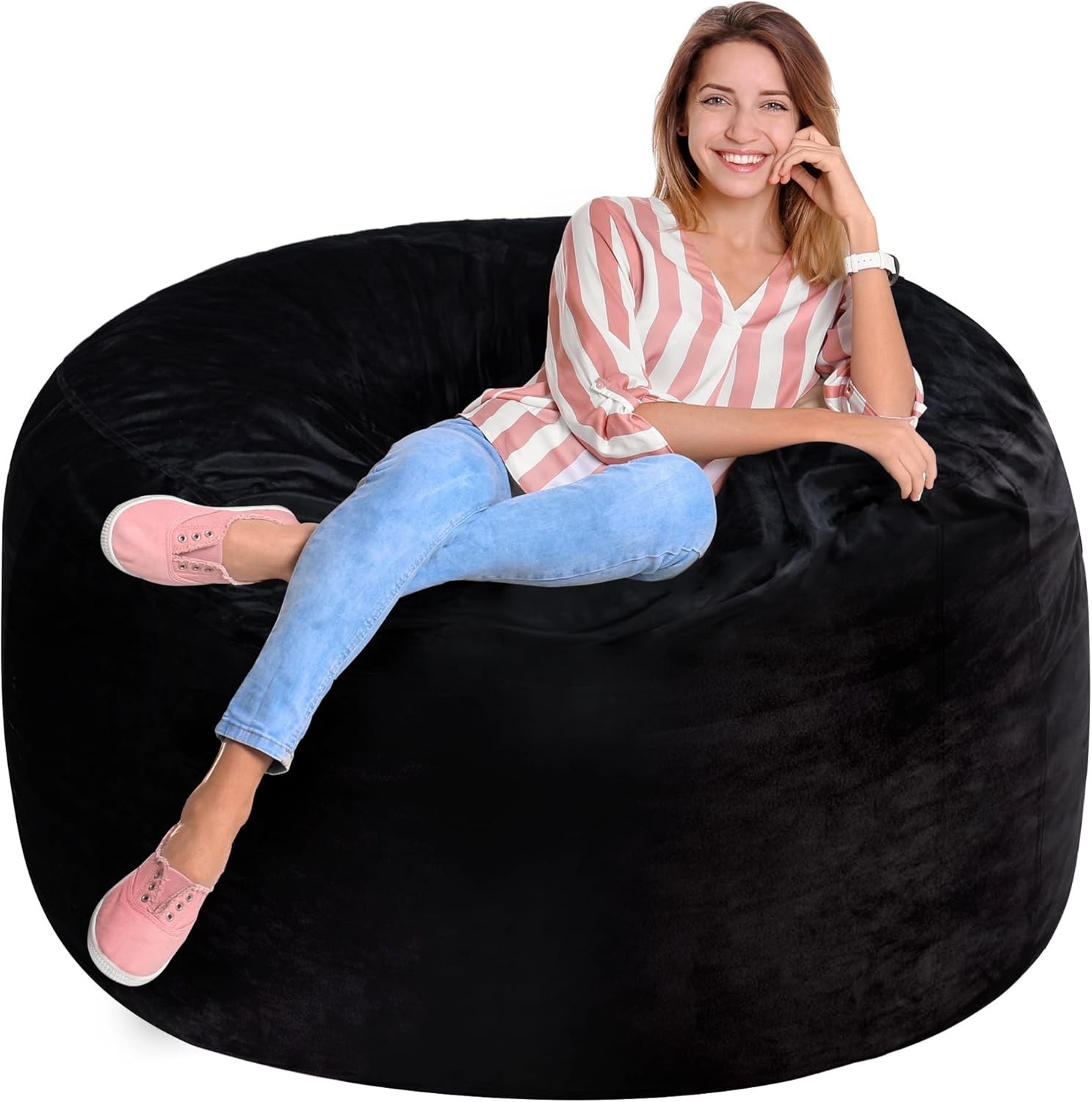 3FT Bean Bag Chair Memory Foam Filled Velvet Large Soft Sofa for Lounging