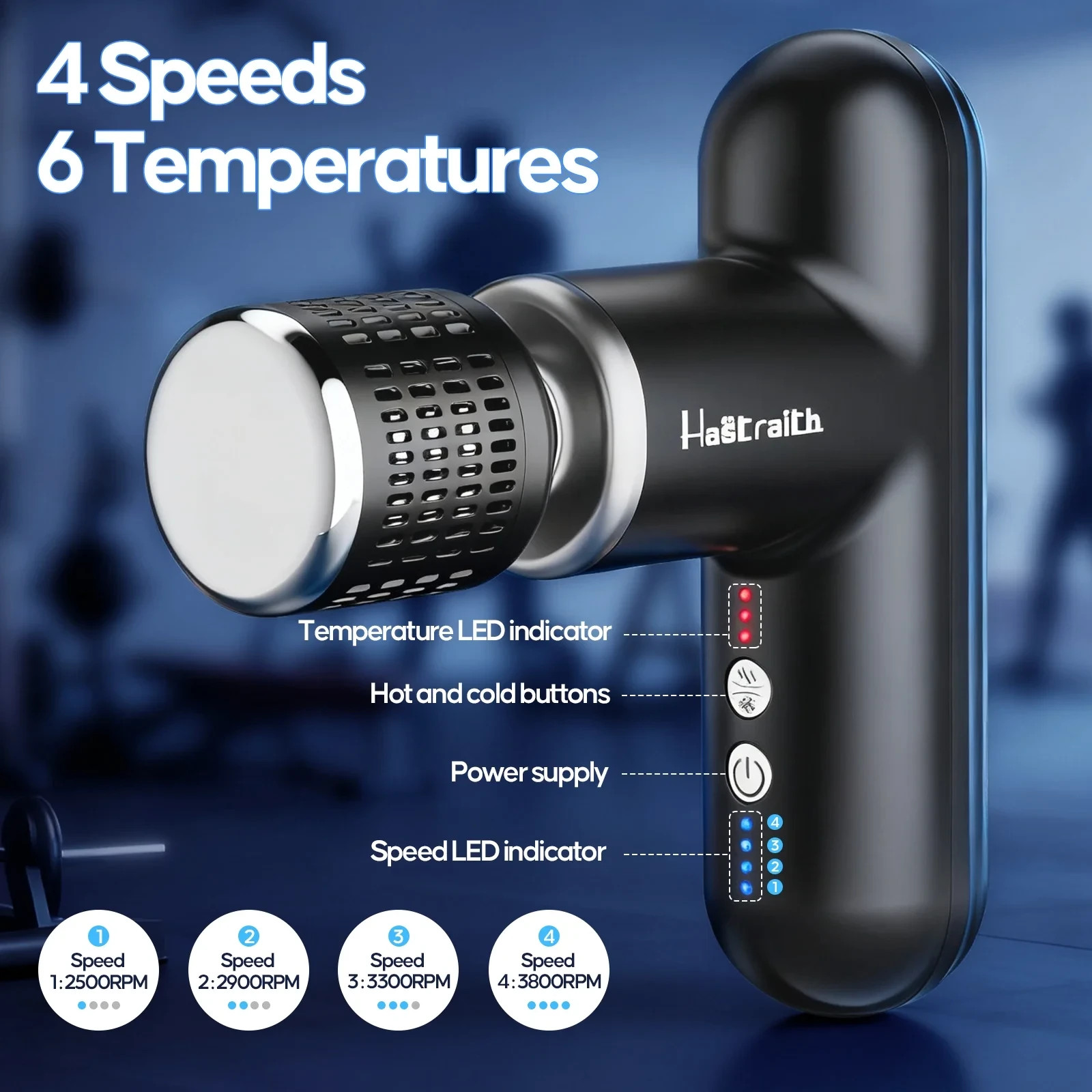 как выглядит Massage Gun with Heat and Cold Deep Tissue Percussion Massager Gun with 5 Heads фото