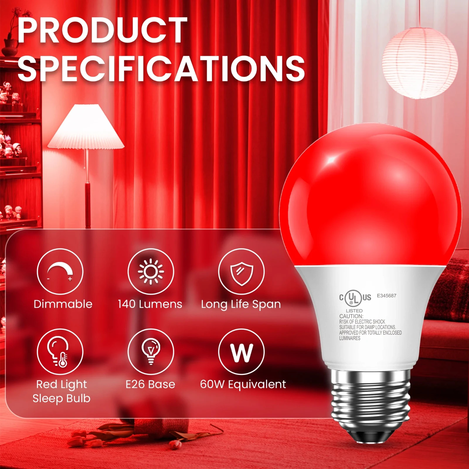 9W Red Light Bulbs for Sleep Blue Light Blocking Bulb, Red Light Night Light 4