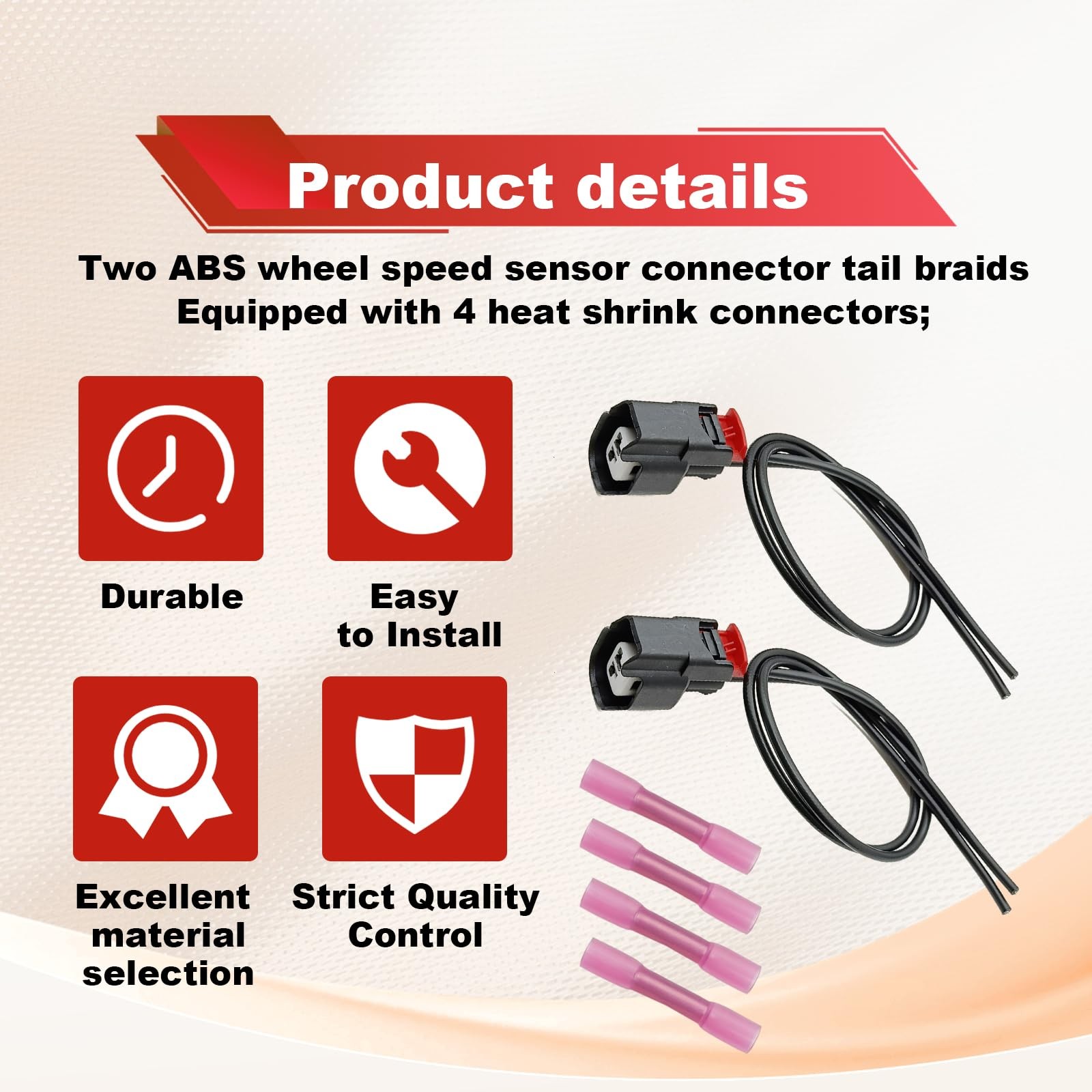 2Pcs ABS Wheel Speed Sensor Wiring Harness Connector Pigtail Plug Compatible
