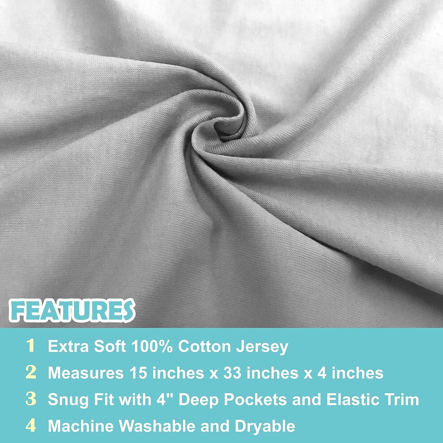 15 x 33 Fitted Bassinet Sheet, 100 Natural Cotton Jersey Knit, Gray, Soft ...