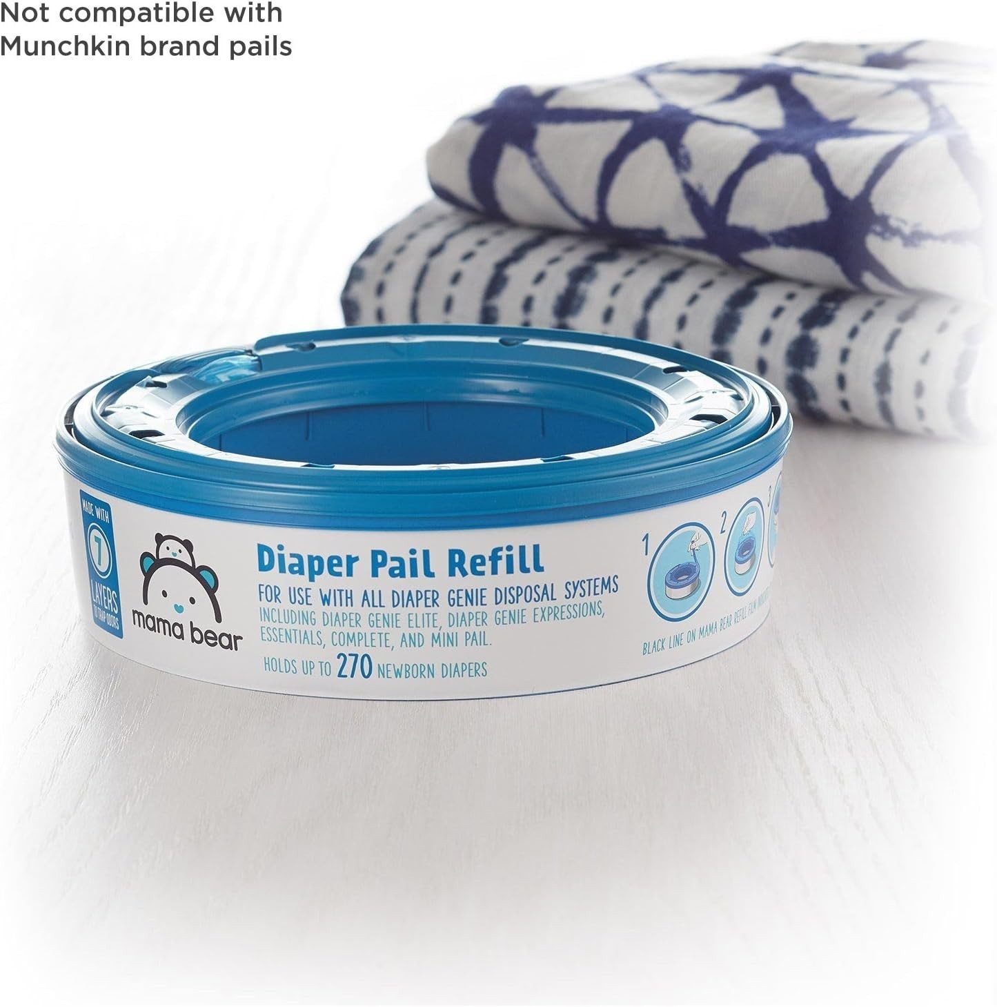 Amazon Brand - Diaper Pail Refills for Genie Pails, Unscented, 270 Count Pack...