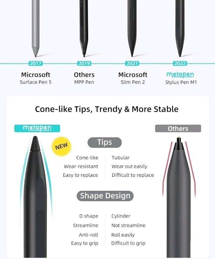 Metapen L piz ptico M1 para Microsoft Surface Pro 11/10/X/9/8/7/6/5/4/3/Book 3/