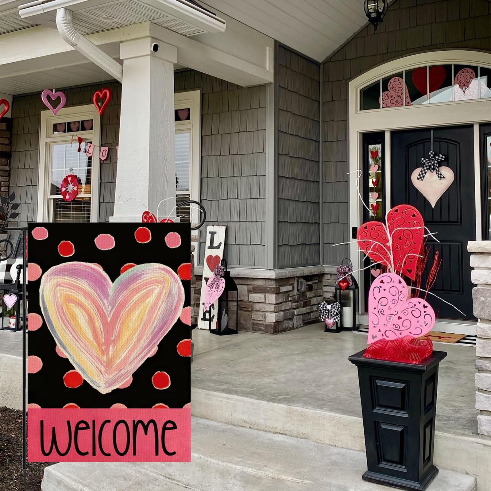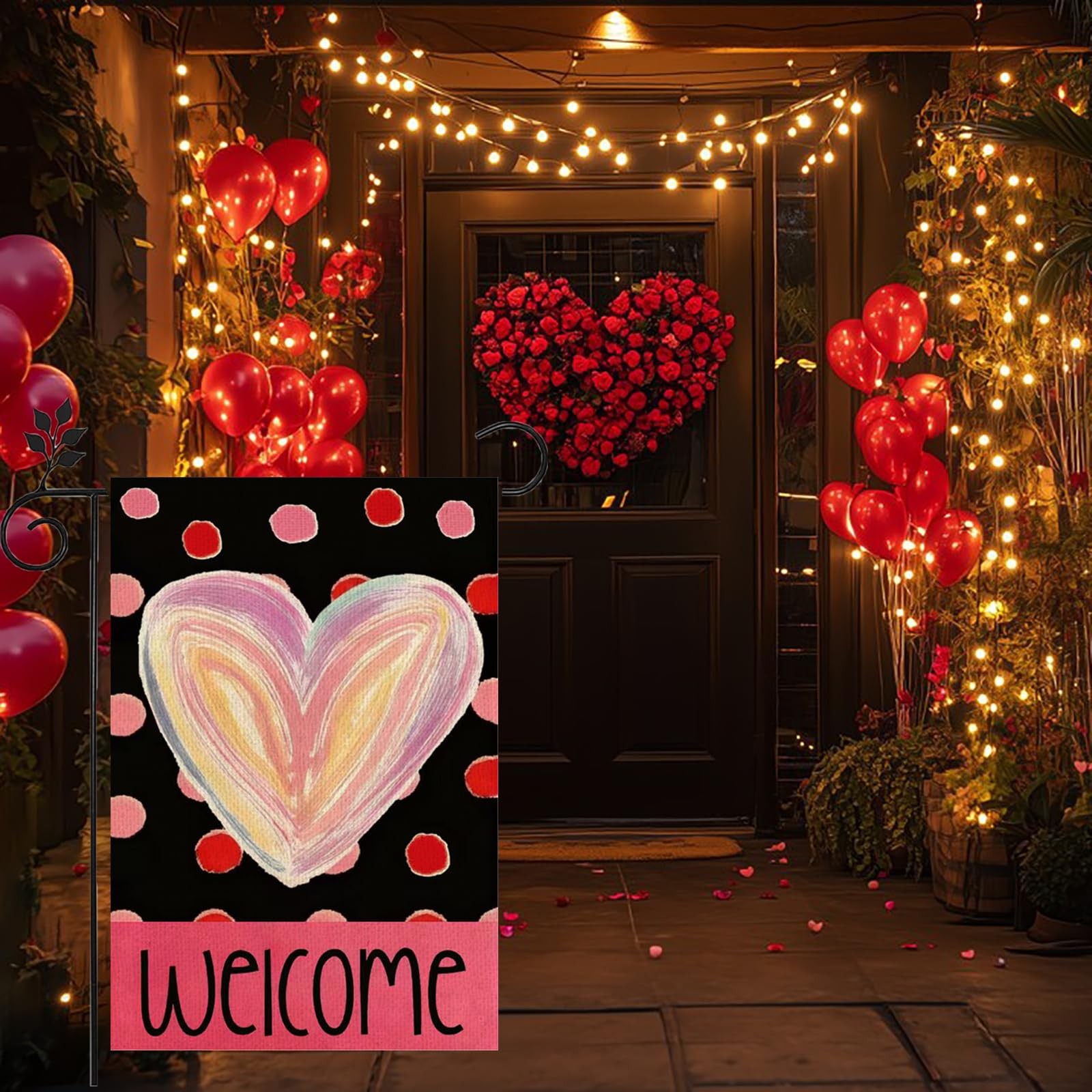 Valentines Day Love Heart Garden Flag 12x18 Inc Double Sided Outside, Polka Dots