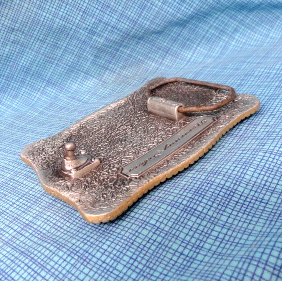 как выглядит Cowboy Belt Buckle Western Floral Scroll Rodeo Bull Storming Silver Vtg .SHY207 фото