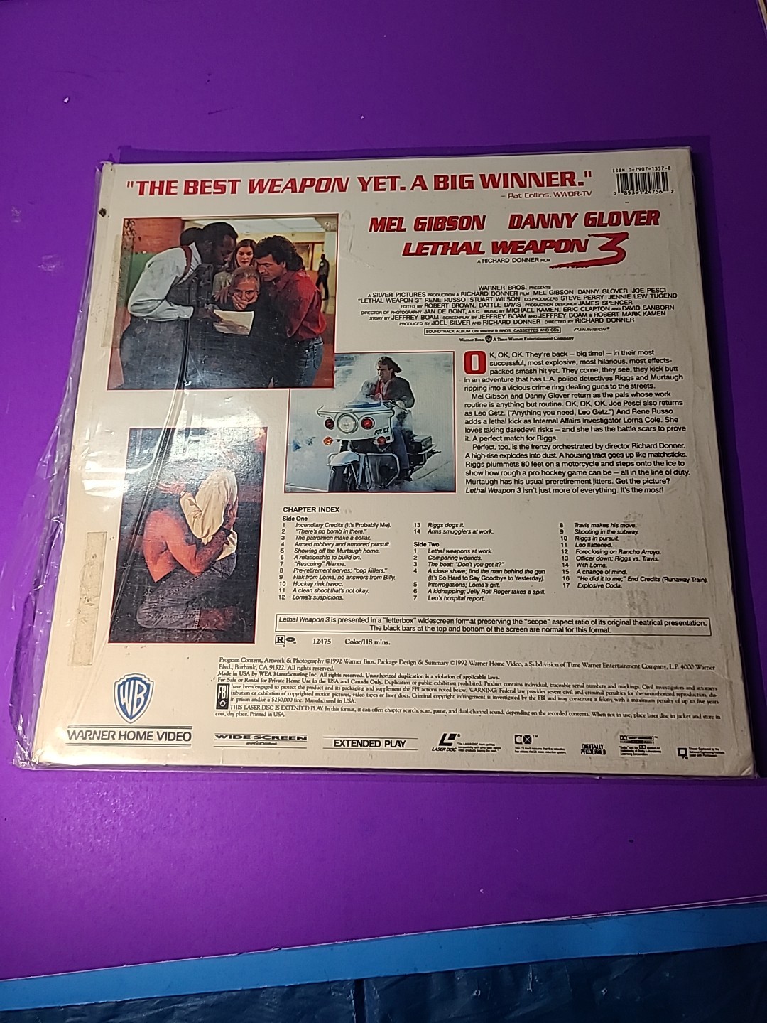 Lethal Weapon 3 Laserdisc, 1992 Widescreen Mel Gibson Danny Glover Untested