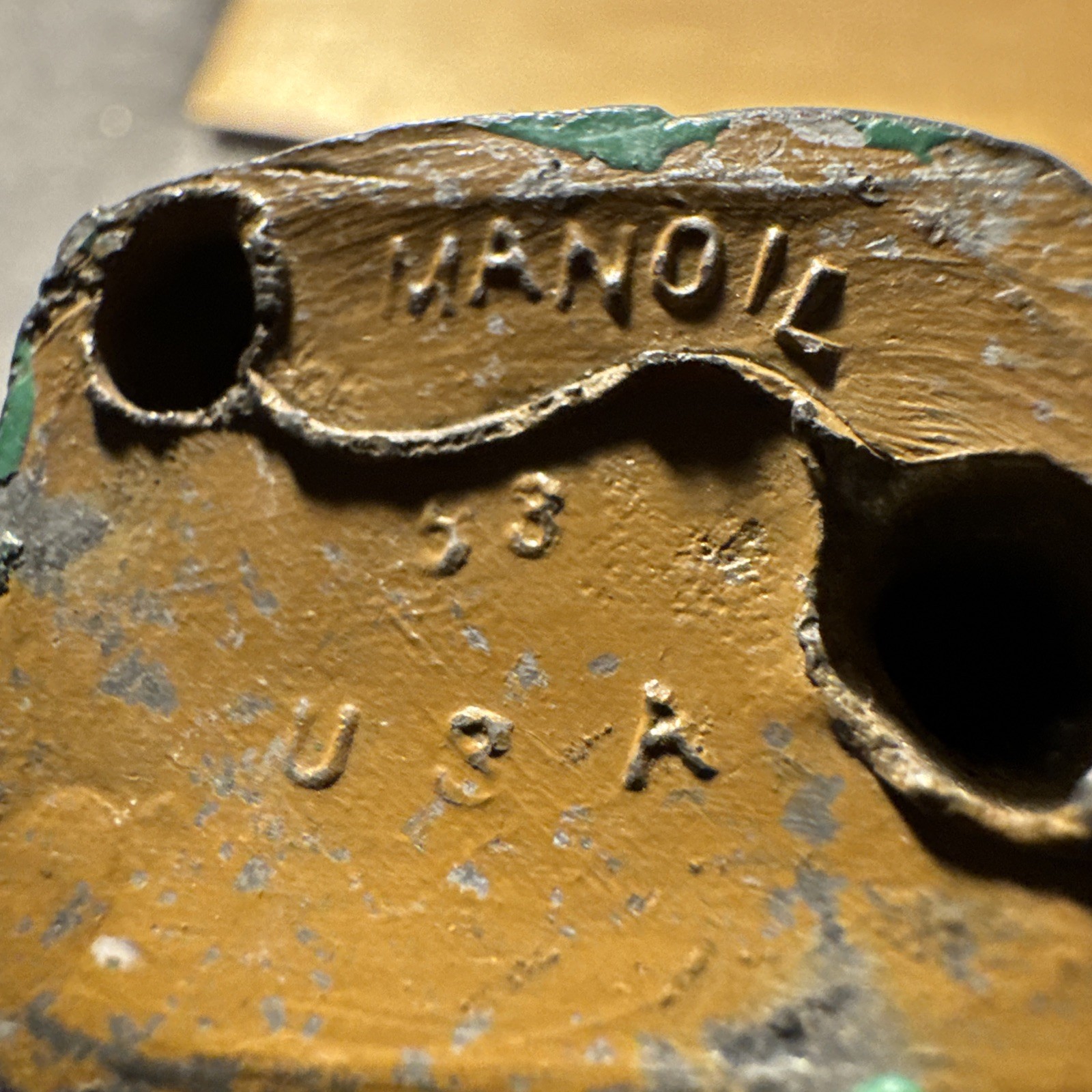 1930 s Vintage Marked Manoil 63 USA Lead Toy. Wearing A Gas Mask Good Cond