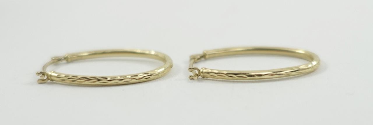 как выглядит 14K yellow gold ladies 7/8" thin oval hoop earrings NEW .7g фото