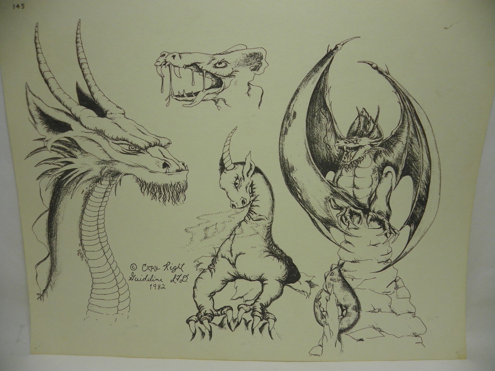 Vintage 1982 Guideline 145 Dragons tattoo flash. Good condition.