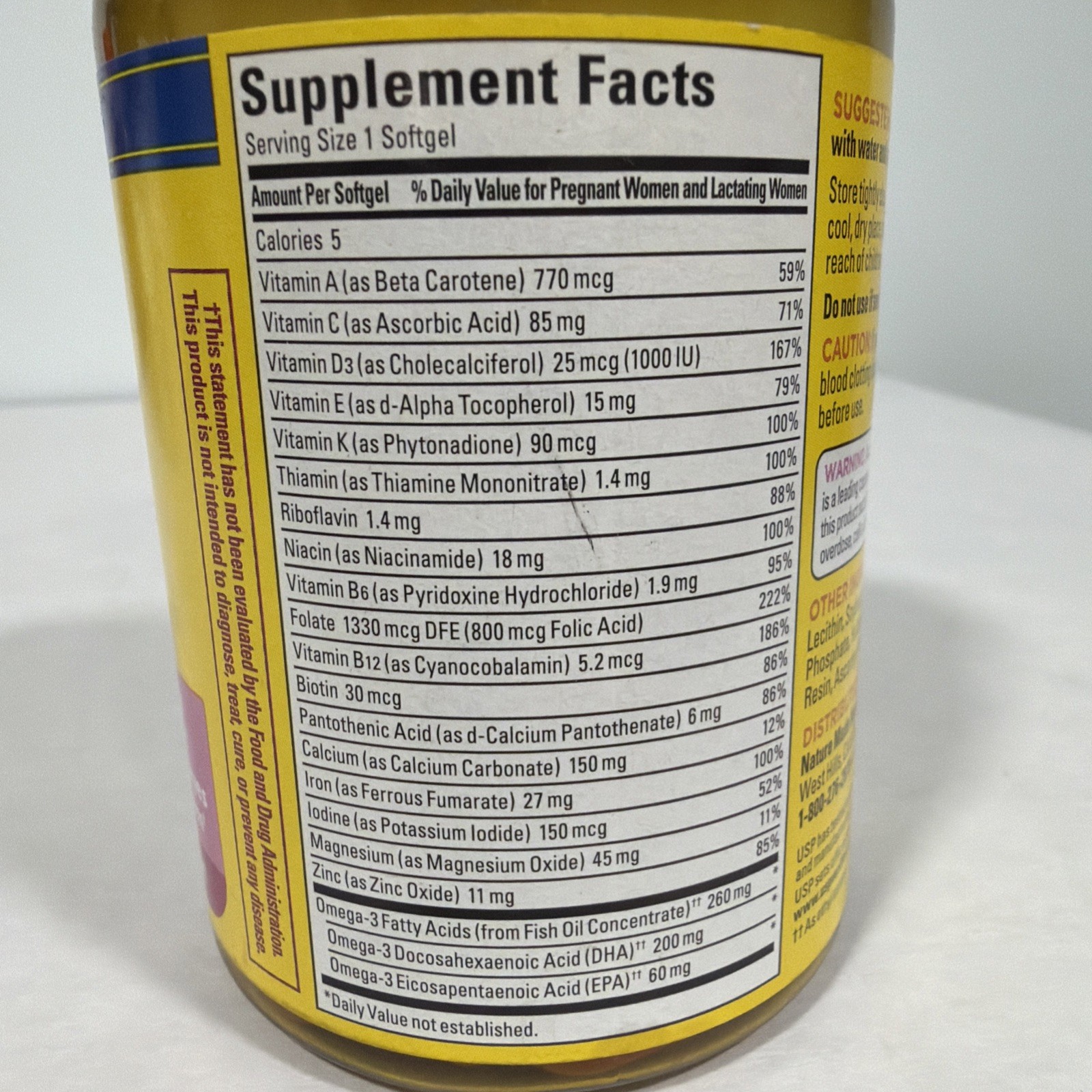 Nature Made Prenatal Multivitamin with Folic Acid DHS, 60 softgels, exp 3/26
