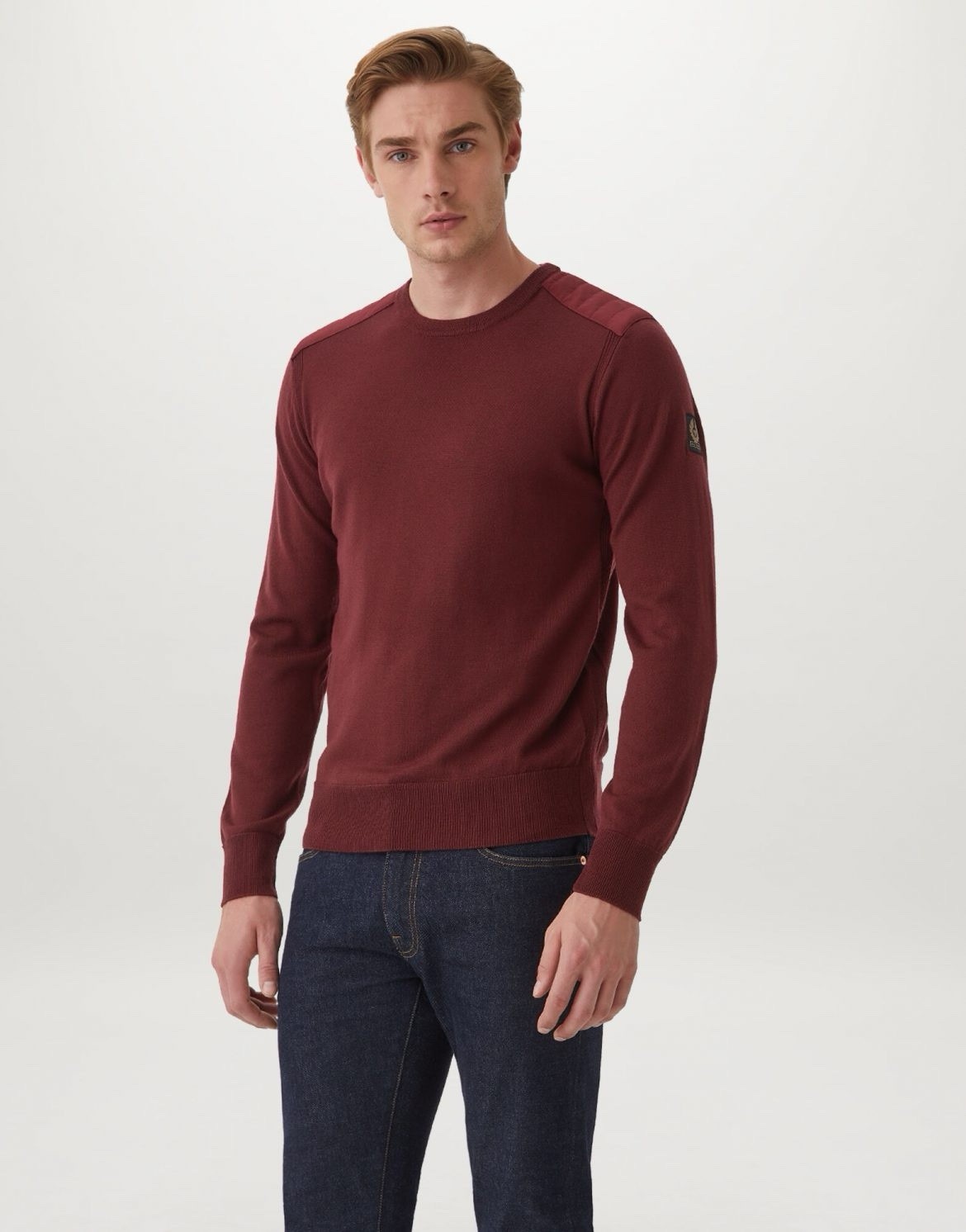 как выглядит Belstaff Merino wool Crew Neck Sweater Burgundy Mens S фото