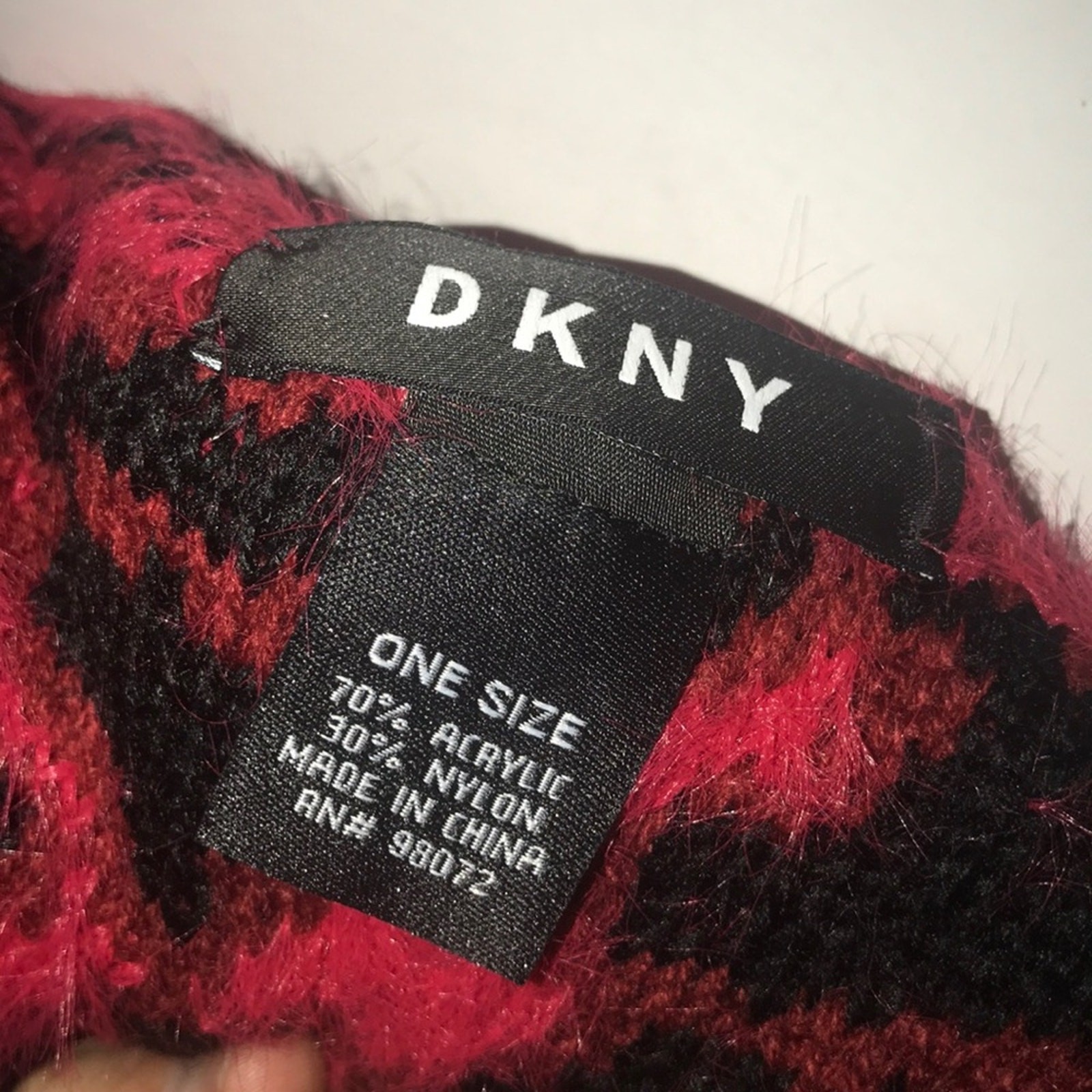 как выглядит DKNY 36 NEW Red Black Fuzzy Animal Print Beanie Cheetah Toboggan Hat Cap фото