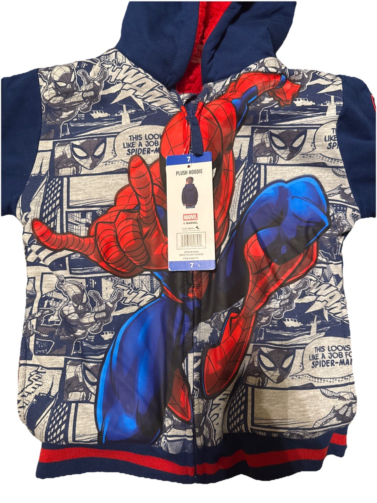 Marvel Spider-Man Boys Size 7 Hooded Soft Plush Jacket New With Tags Blue Red