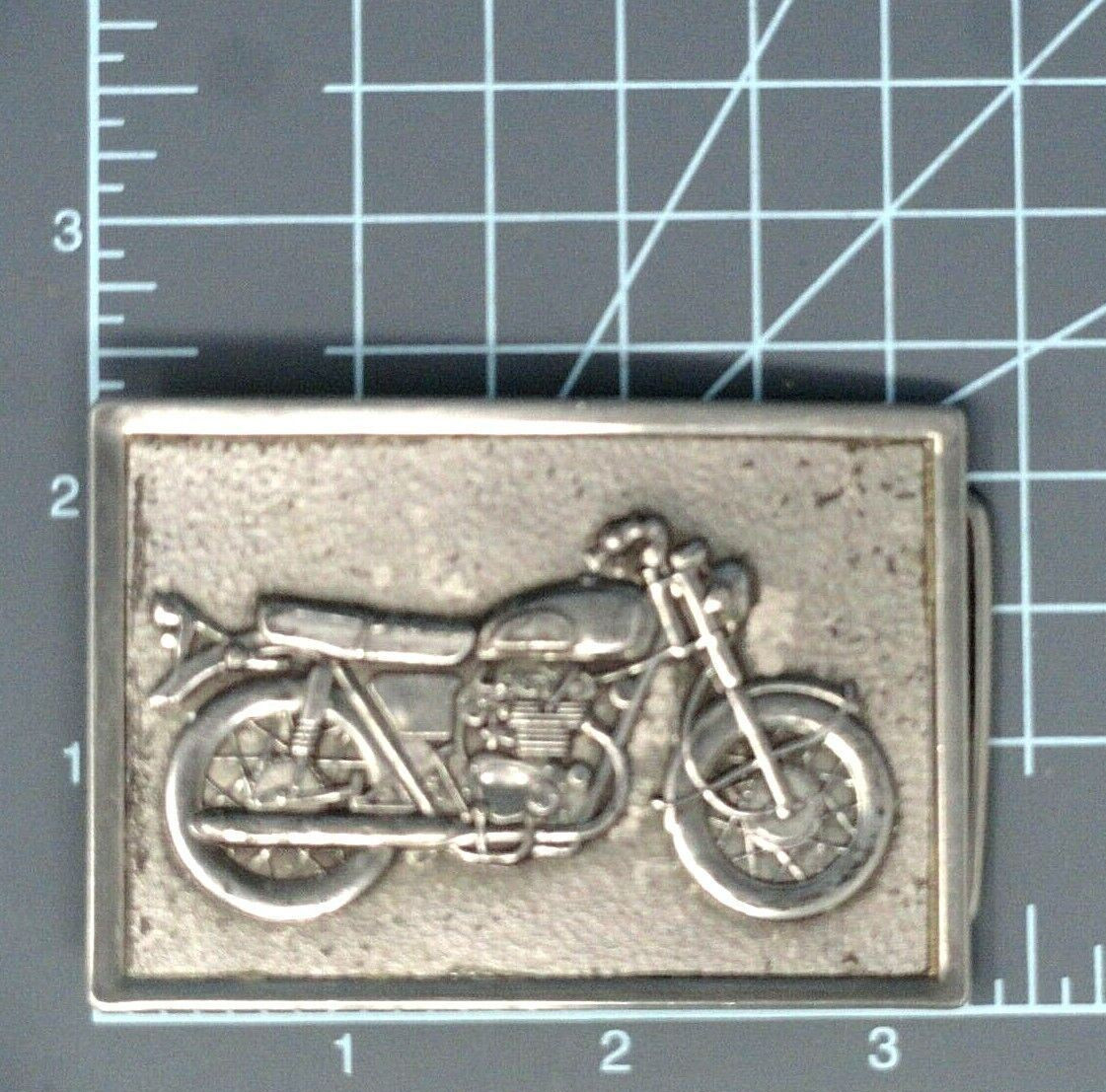Motorcycle Belt Buckle Biker Pressed Metal Inlay Street Bike Vtg 80s .CVB614