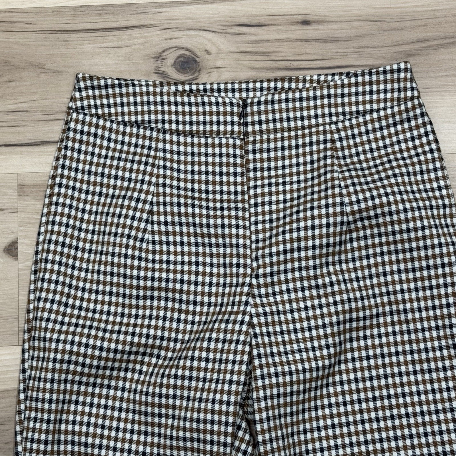 Retro 70 s Gingham Wide Leg Pants Womens Size 6 Tan Chocolate Black Check Preppy
