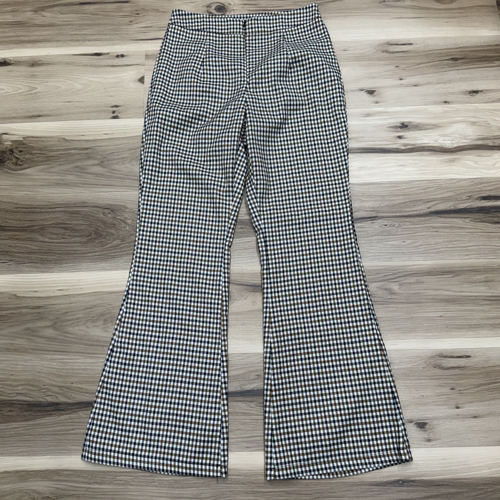 как выглядит Retro 70 s Gingham Wide Leg Pants Womens Size 6 Tan Chocolate Black Check Preppy фото