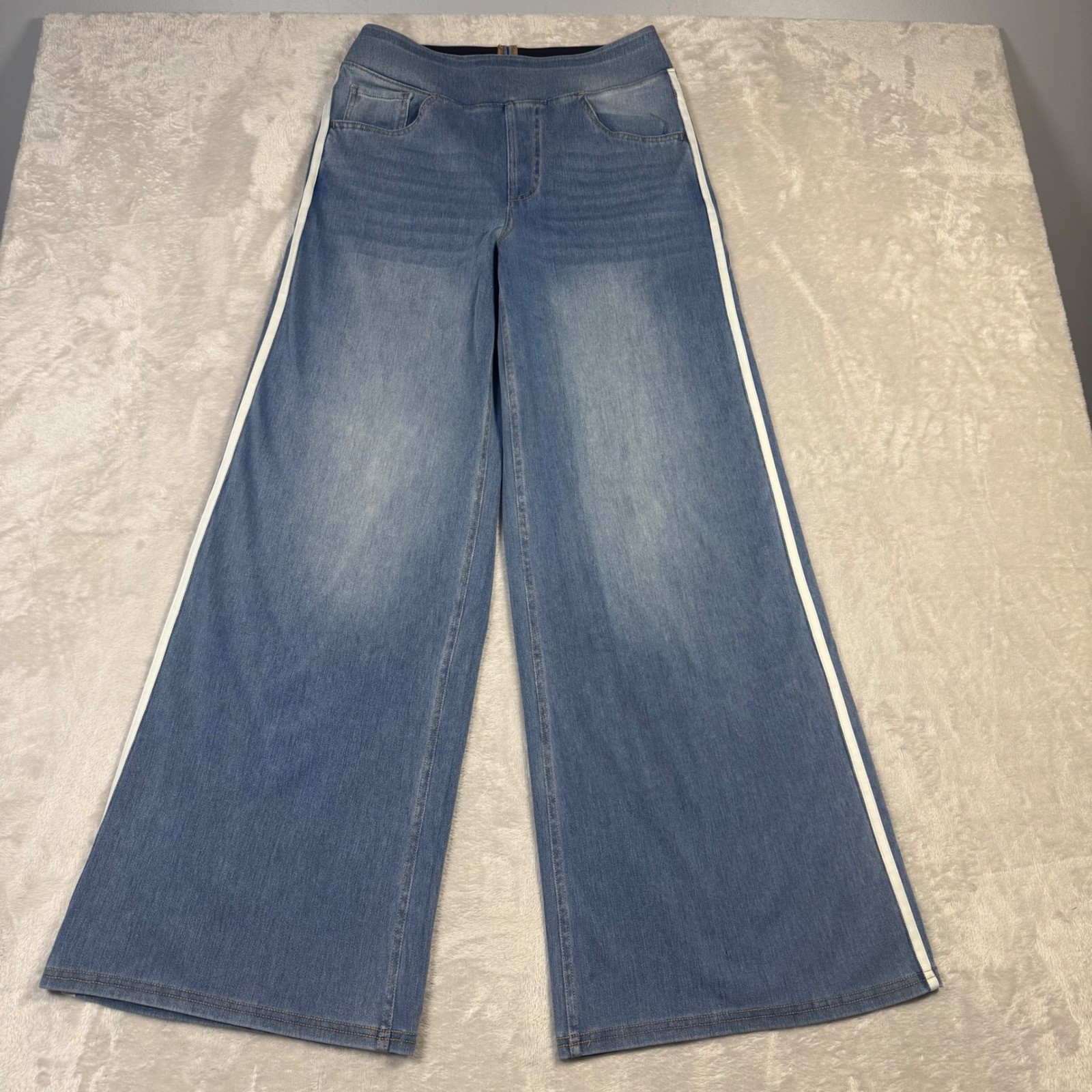 как выглядит NWOT Halara Flex Women High Waisted Stripe Wide Leg Flowy Jeans M Petite Pockets фото