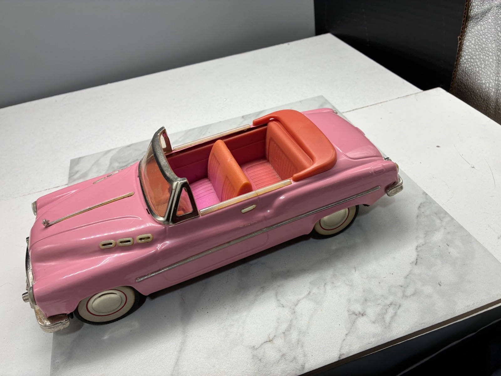 VINTAGE 1950s PINK BUICK CONVERTIBLE TIN FRICTION TOY CAR - DIXIE PLATE RARE