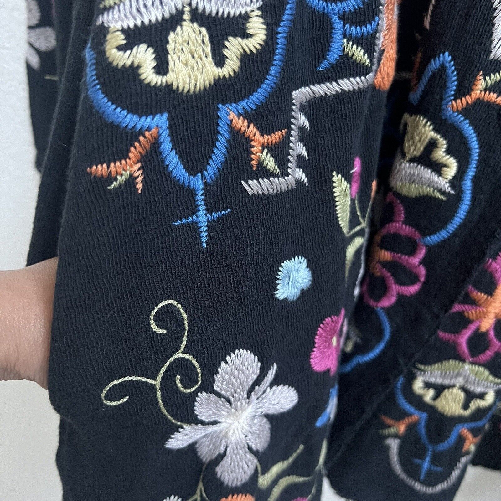 Johnny Was NWT Biya Midi Bomber Jacket Embroidered Long Black Duster Coat Sz S