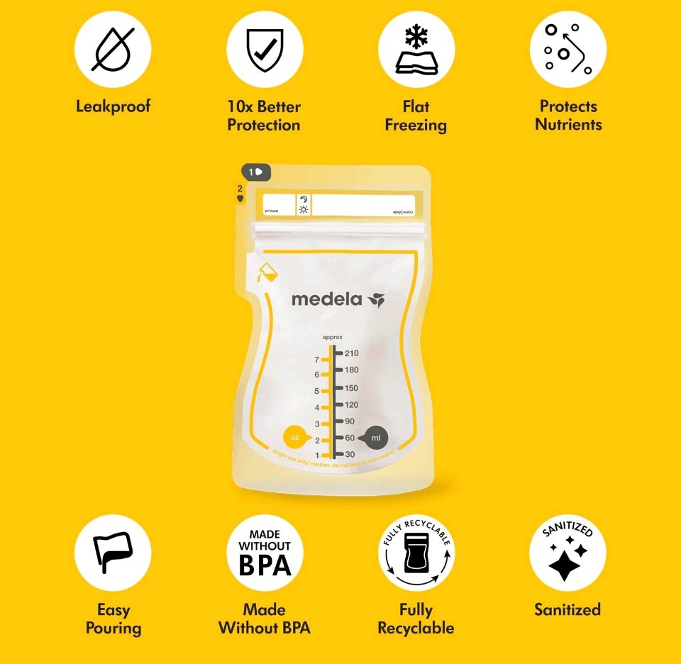 Medela Easy Pour Breastmilk Storage Bags 100 Count 7oz/210ml Disposable New