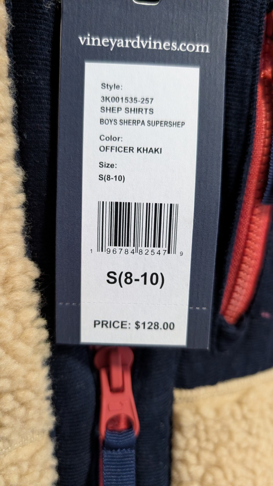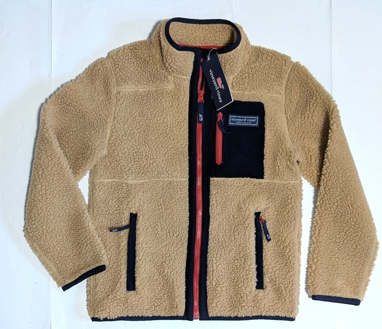 NWT Vineyard Vines Boys 8-10 Supershep Sherpa Full Zip Lined Jacket Khaki Navy