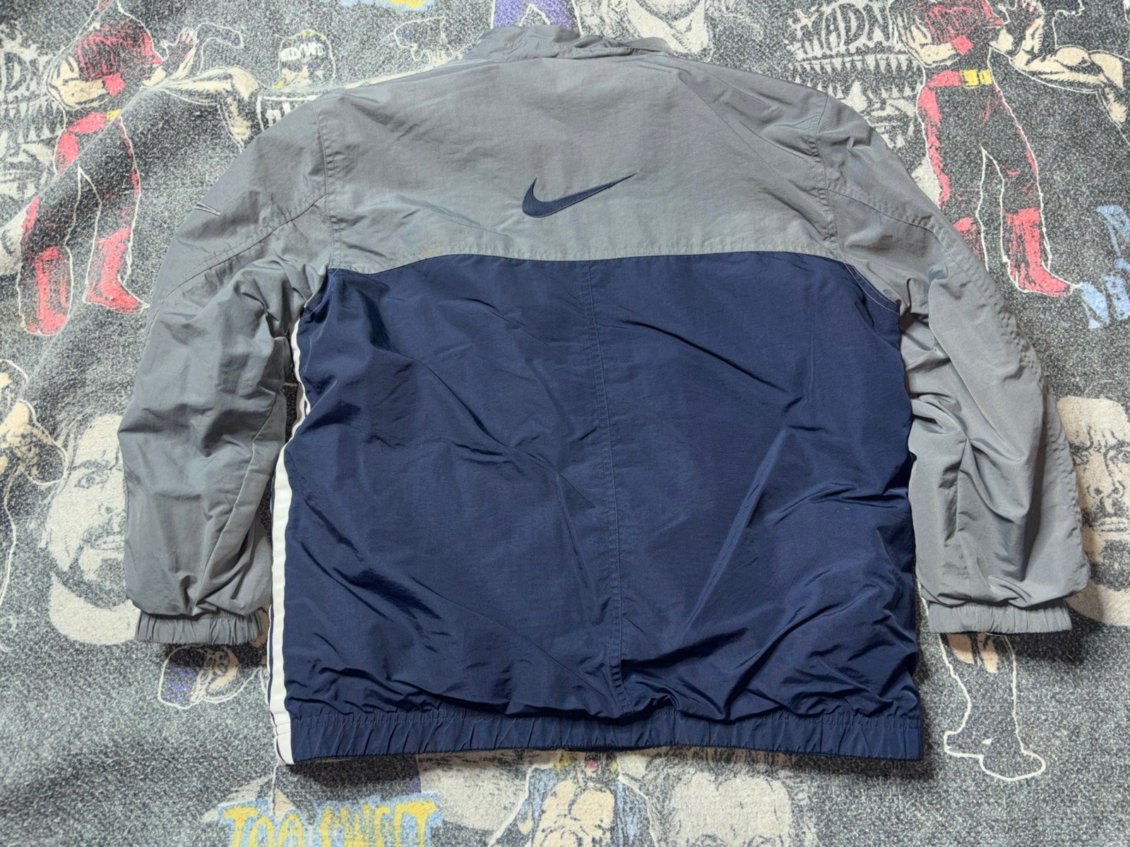 Vintage Y2K Nike Kids Reversible Jacket Full Zip Gray Navy Blue 14-16 Swoosh