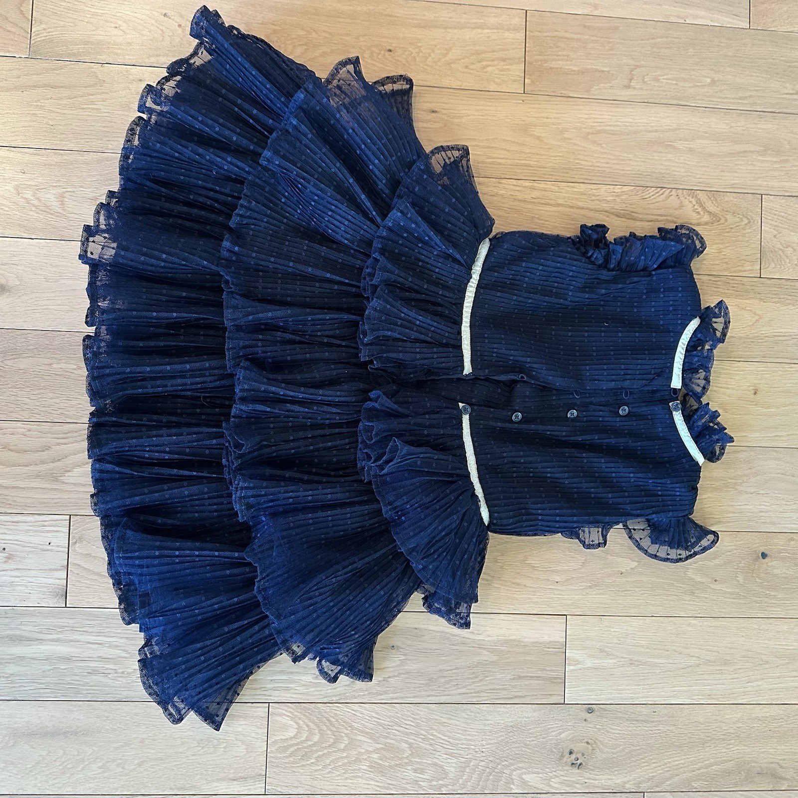 Janie and Jack Dot Tulle Ruffle Dress Navy Blue Dress with Ruffles Size 6