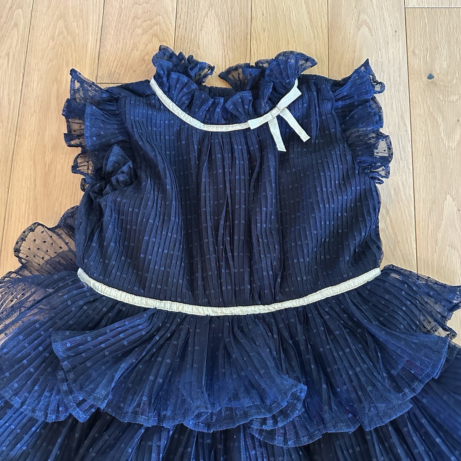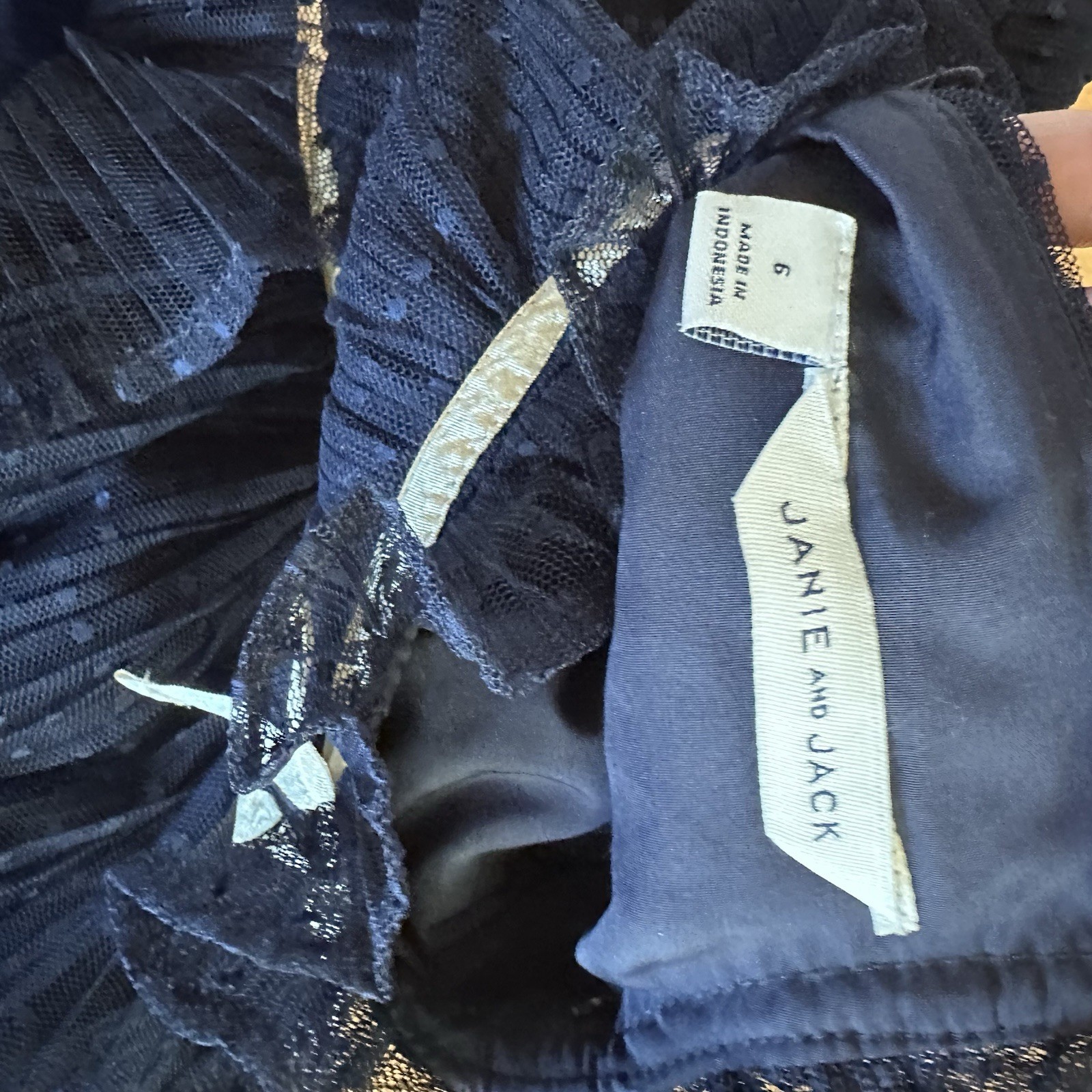 как выглядит Janie and Jack Dot Tulle Ruffle Dress Navy Blue Dress with Ruffles Size 6 фото