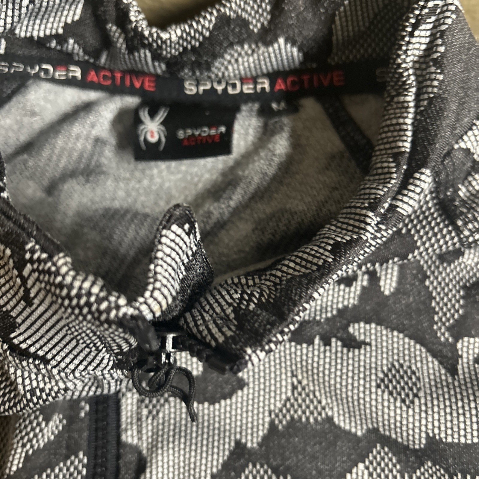 как выглядит Spyder Active Womens Half Zip Medium Black White Camouflage Thumbholes Logo фото