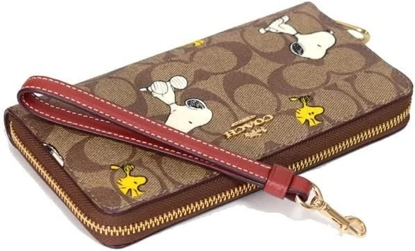 как выглядит COACH x PEANUTS CE705 Long Zip around Wallet Snoopy Woodstock Khaki Signature фото